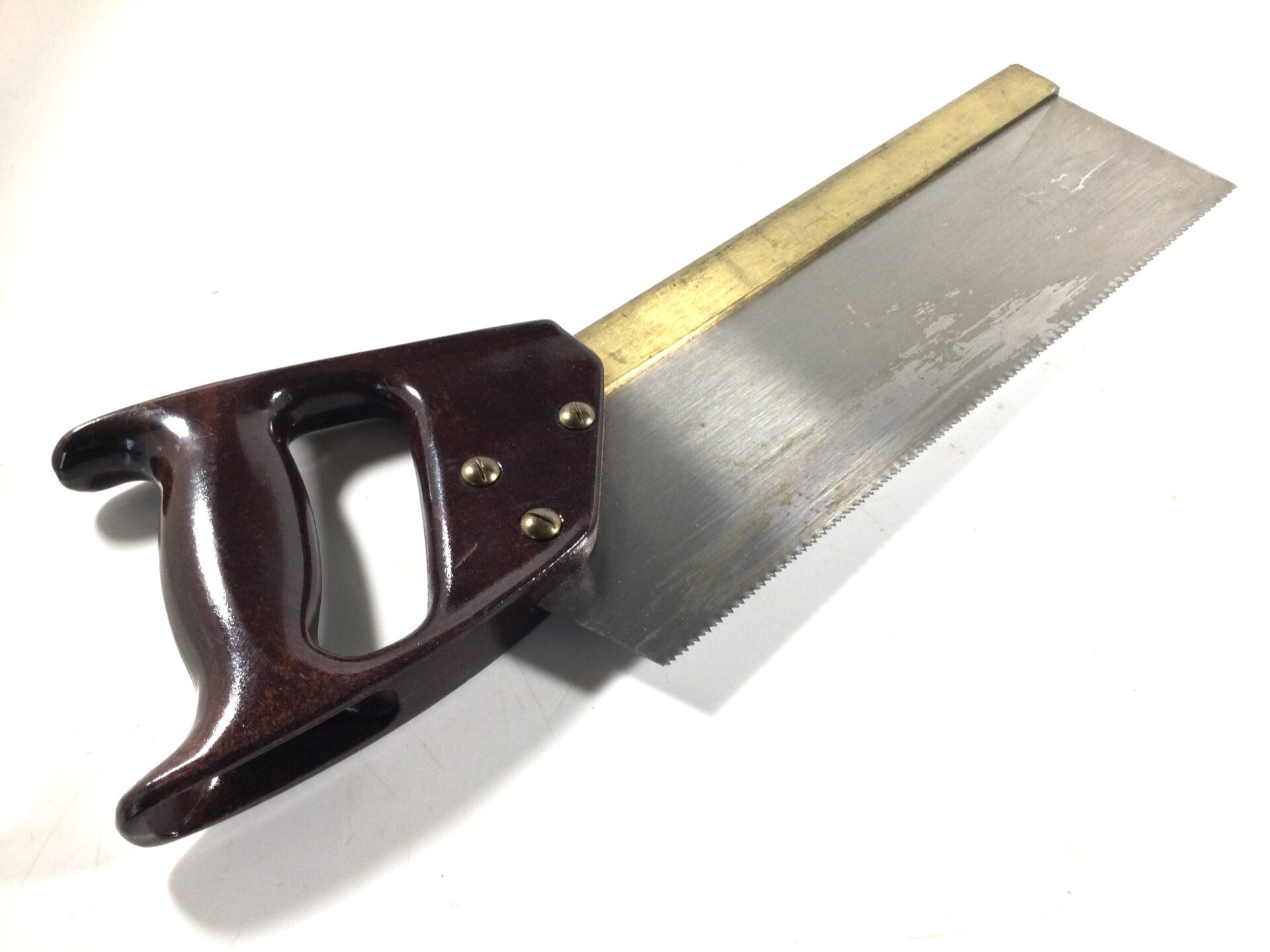 A little used brass back tenon saw with a 12” plate holding 12TPI. Composite handle, saw is sharp and straight and ready to use.