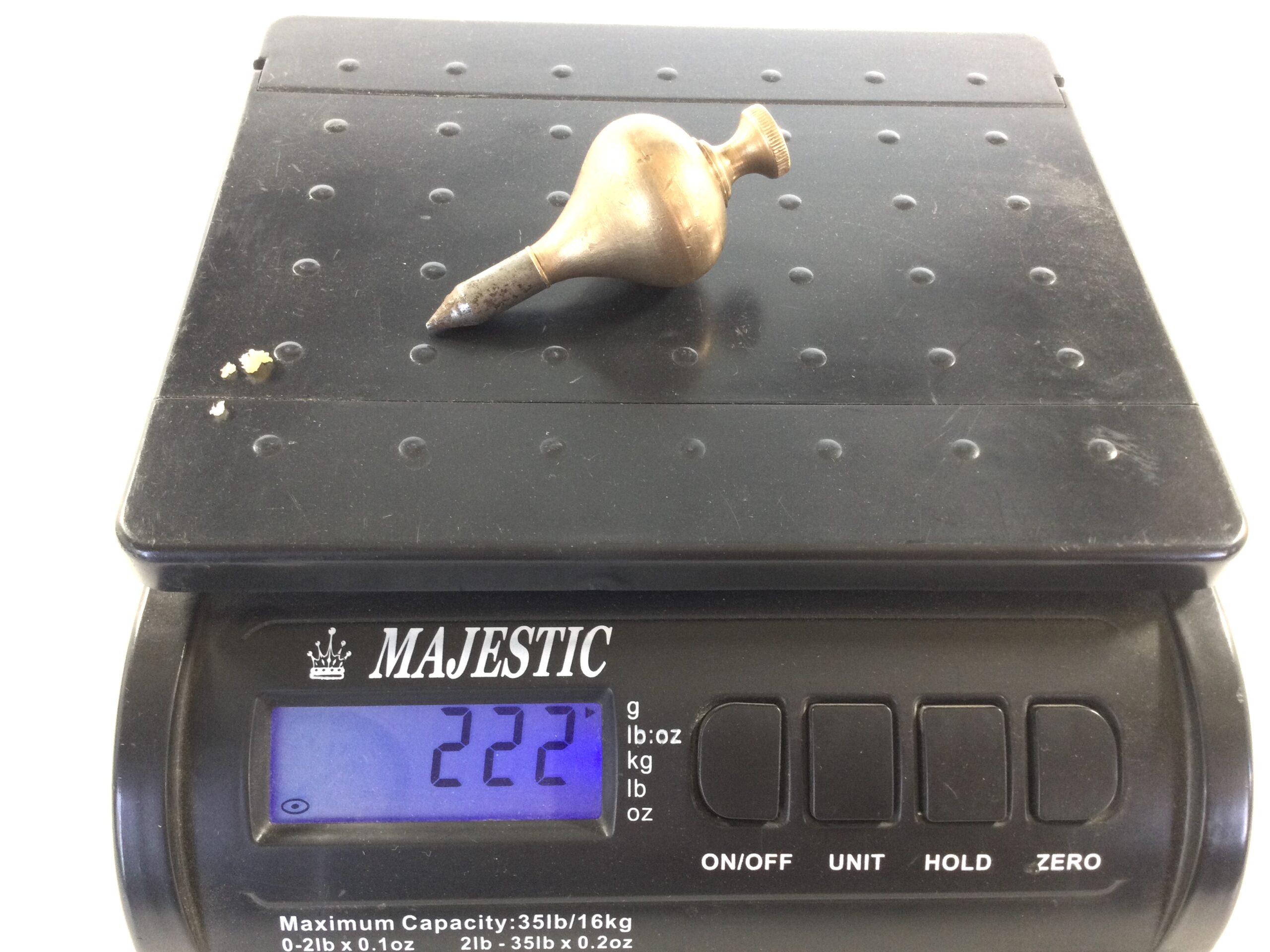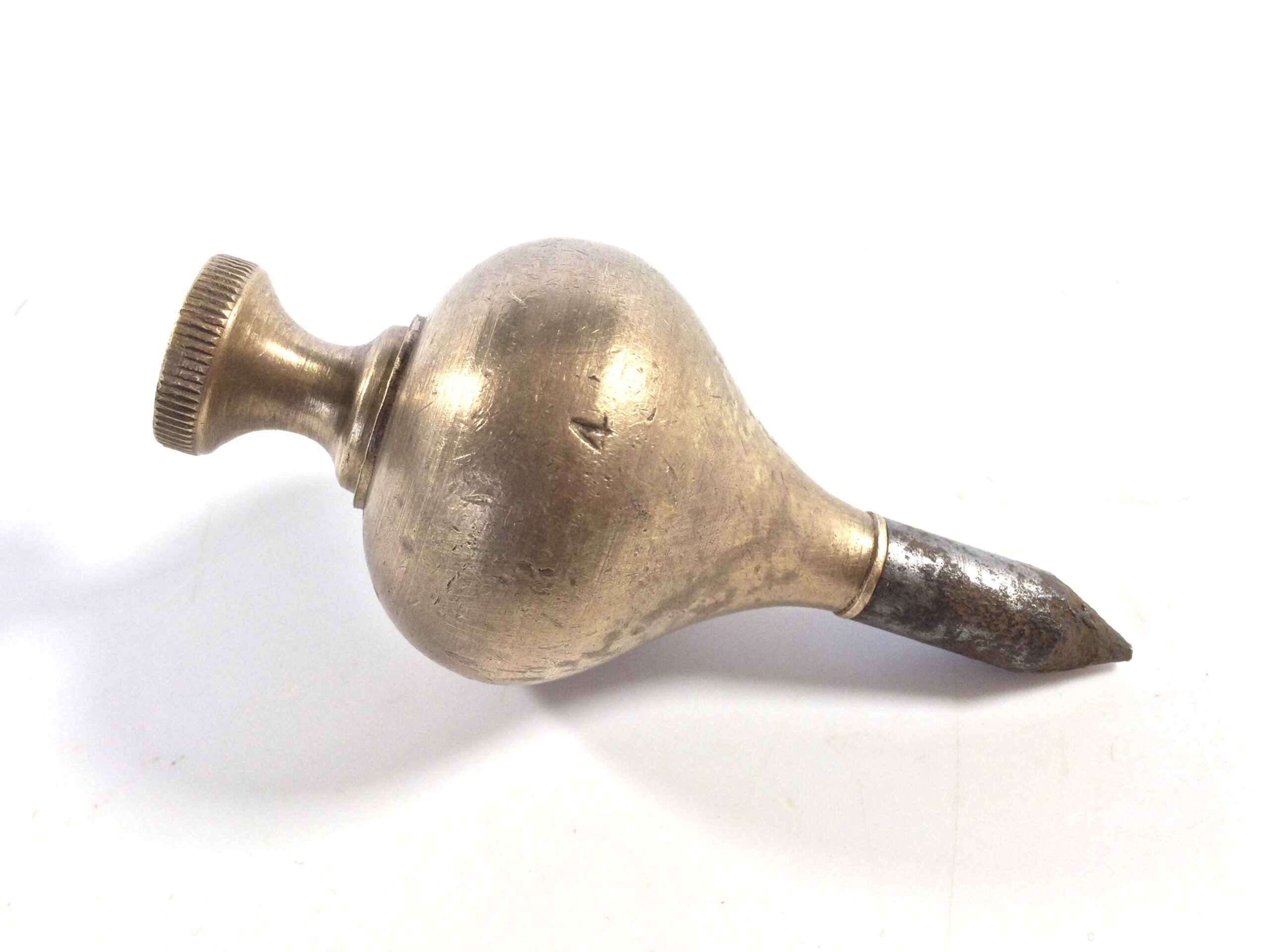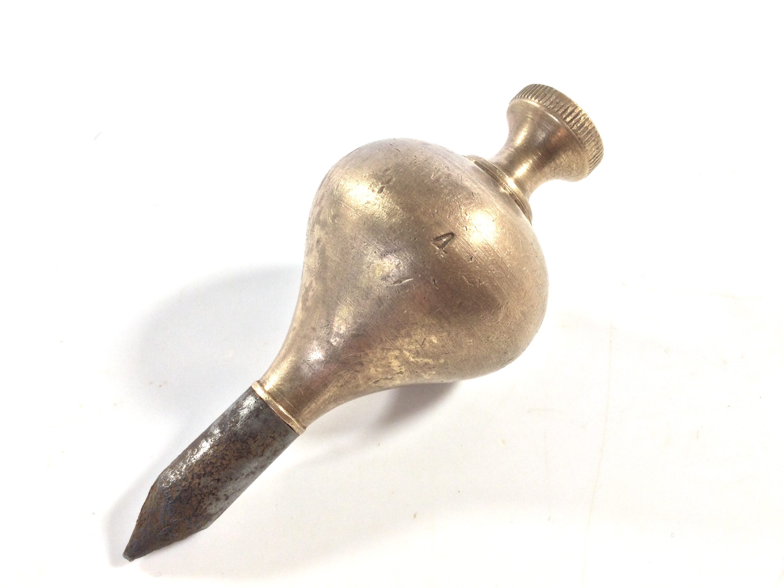 A nice vintage plumb Bob stamped #4, the top unscrews to thread line. Measures 3.1/4” long a diameter of 1.1/2”.