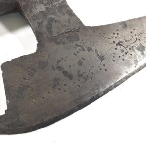 A scarce Austrian long axe, from the Carinthian area, highly decorated with Celtic arcs and points, this style dates to the 17th century, the cutting edge is sharp, the shaft / handle is solid with minimal movement, becoming harder to find are the type of axes.