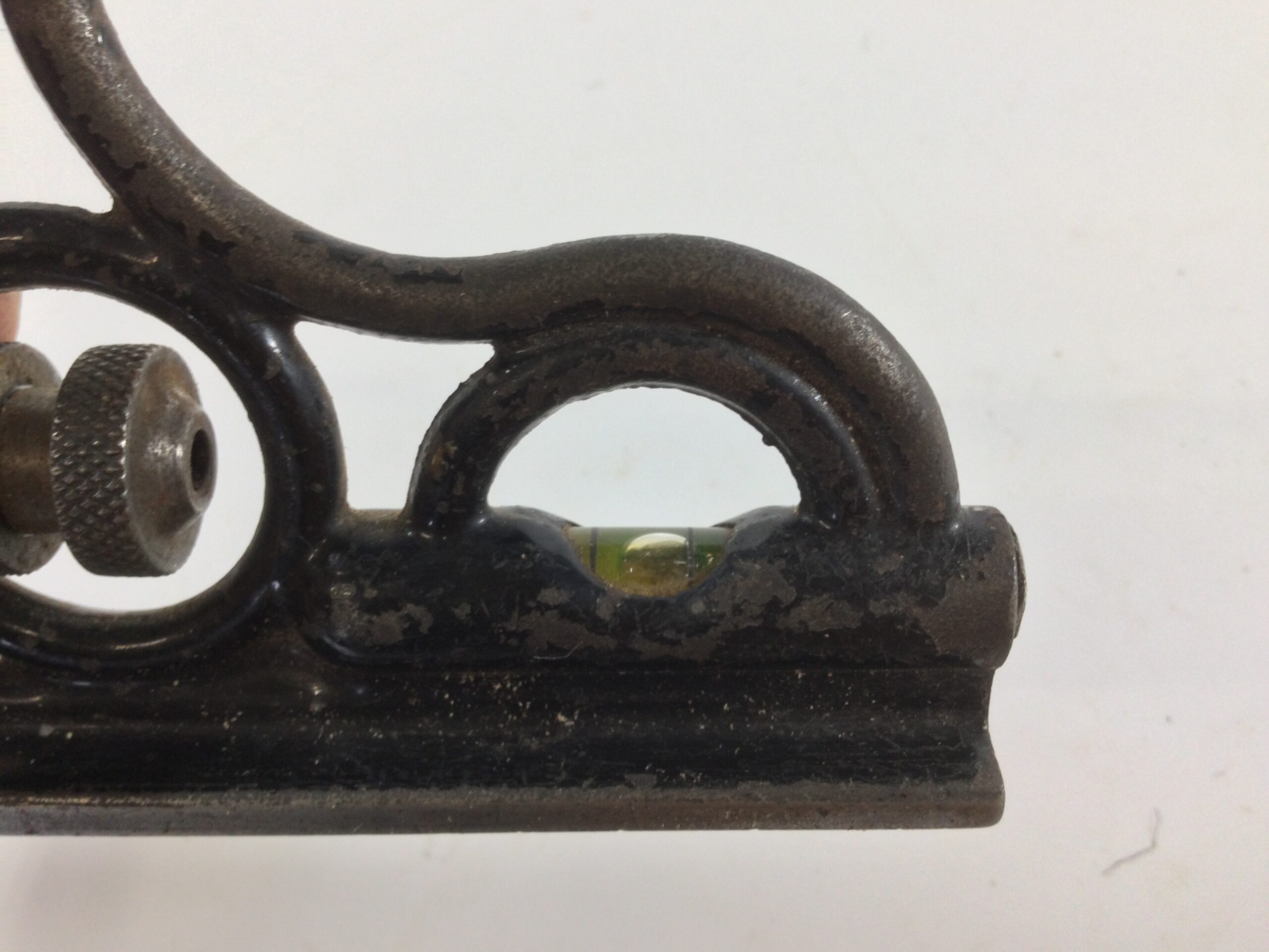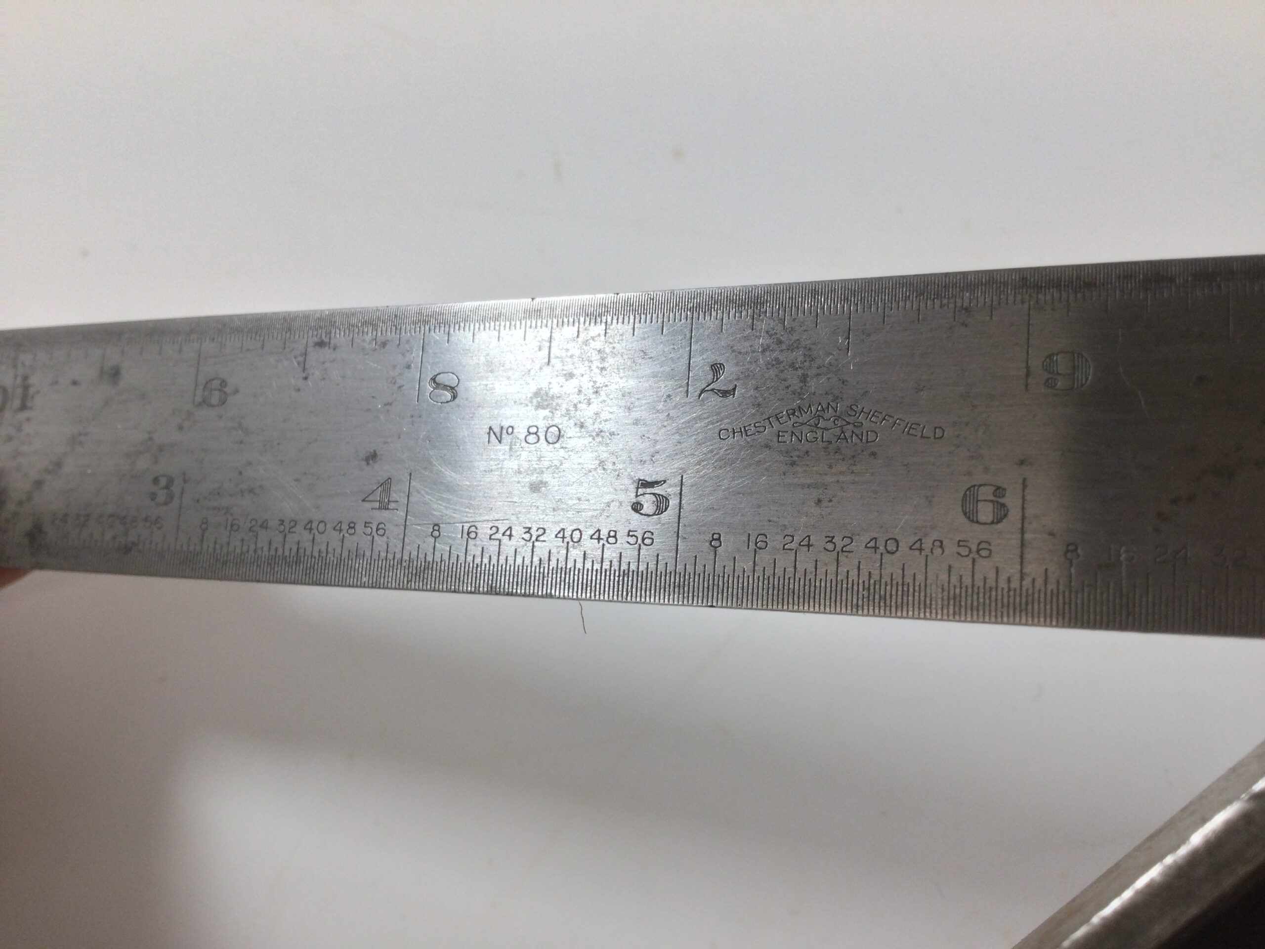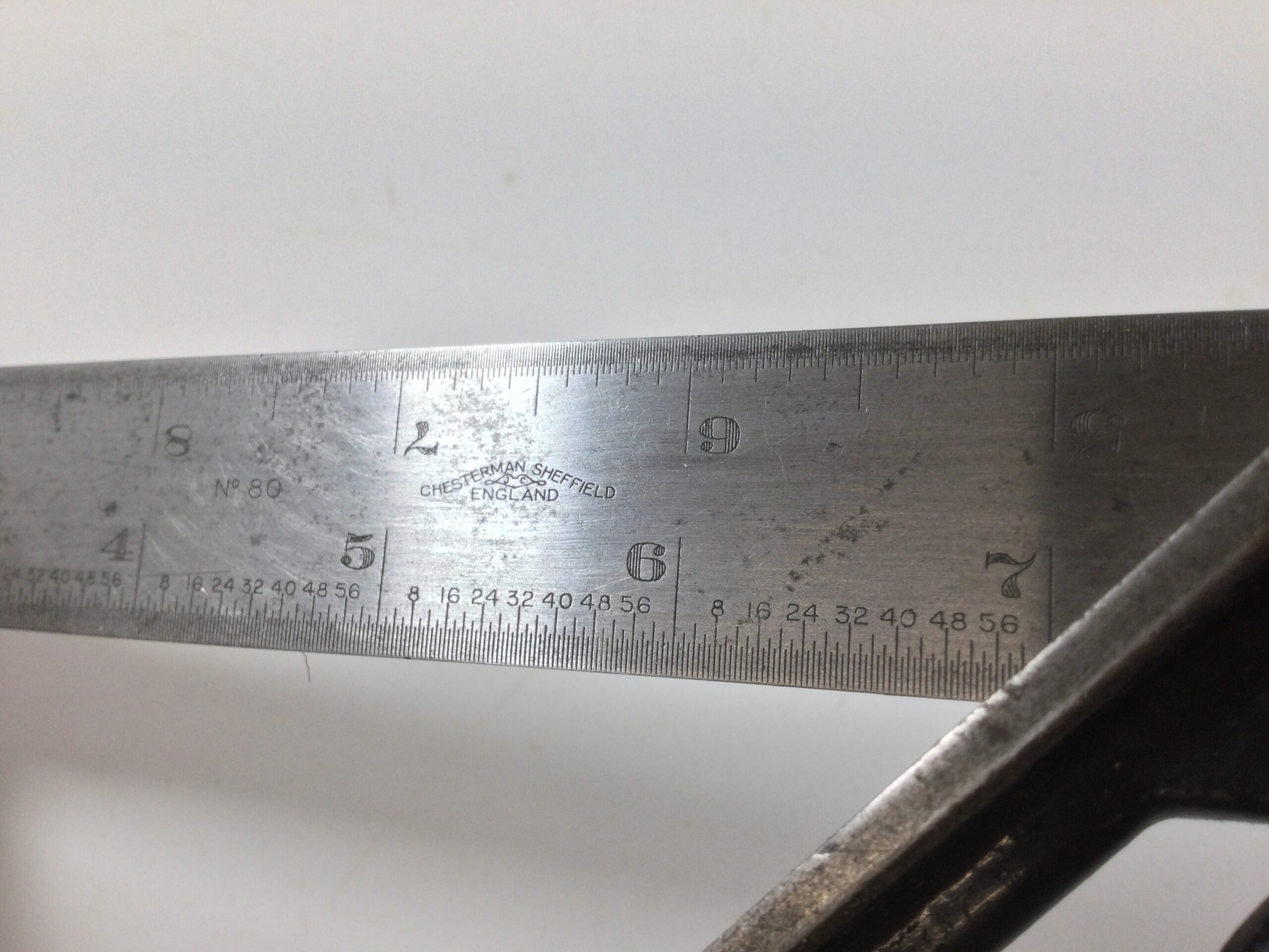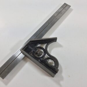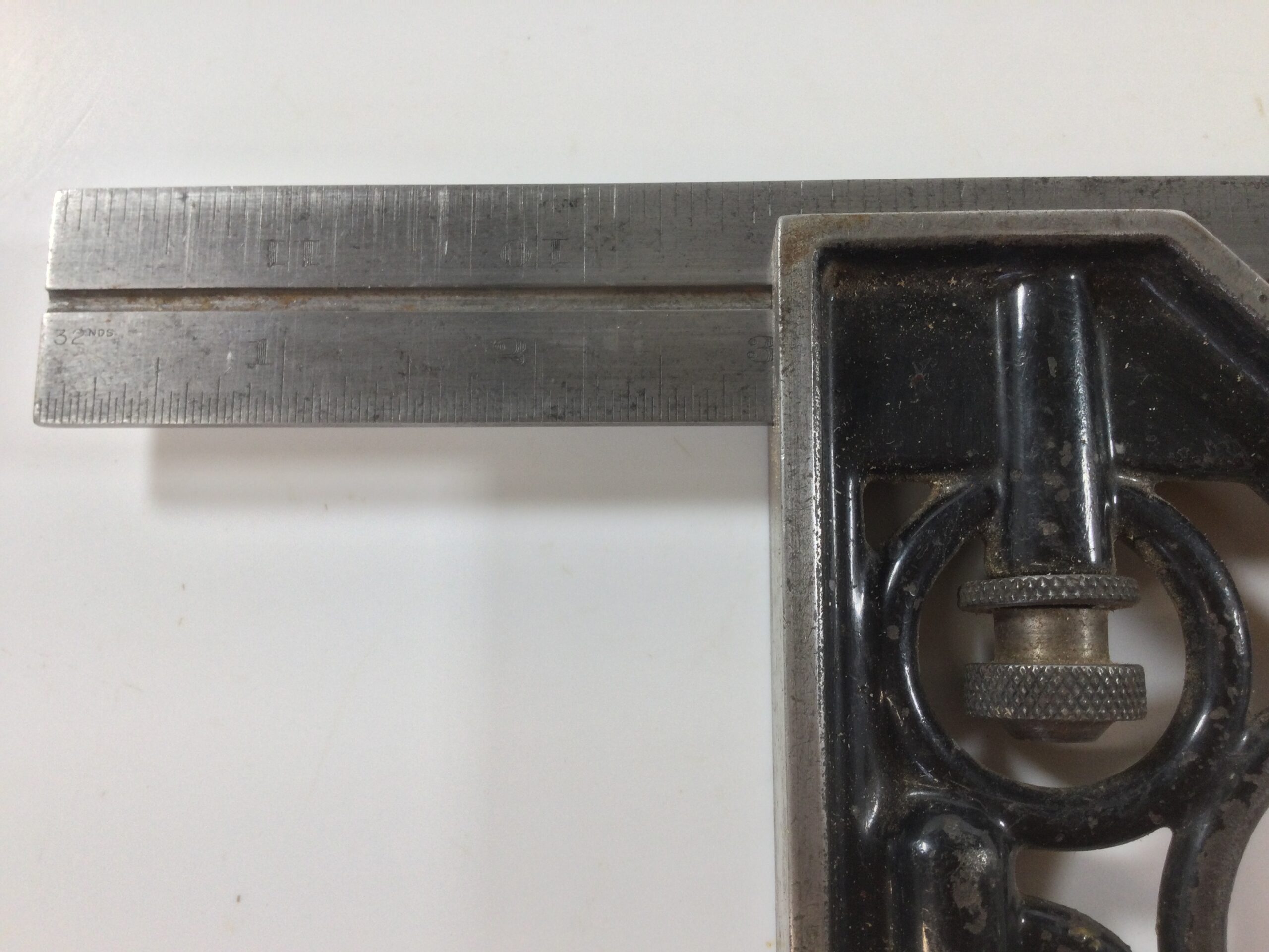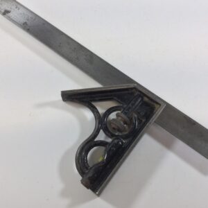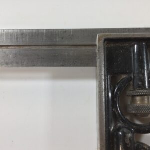 A nice Sheffield made 12” combination square, working bubble clean steel with minor discolouration spots. Imperial measurements. Missing its scribe pin, nice detail to the cast head.