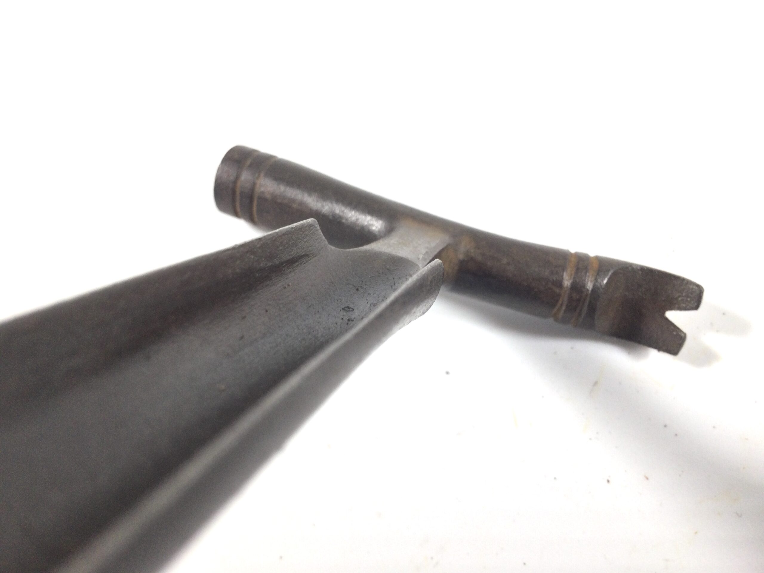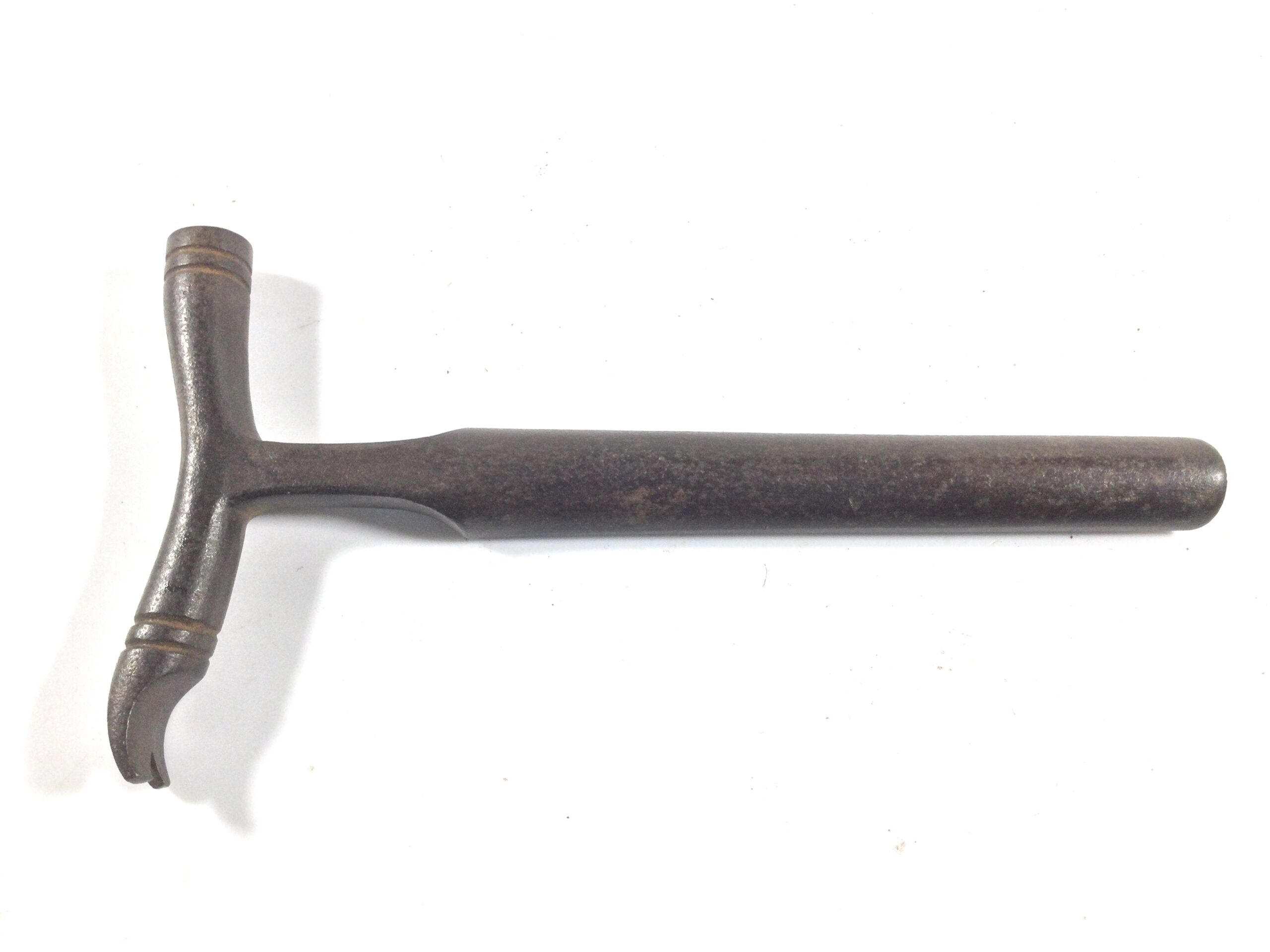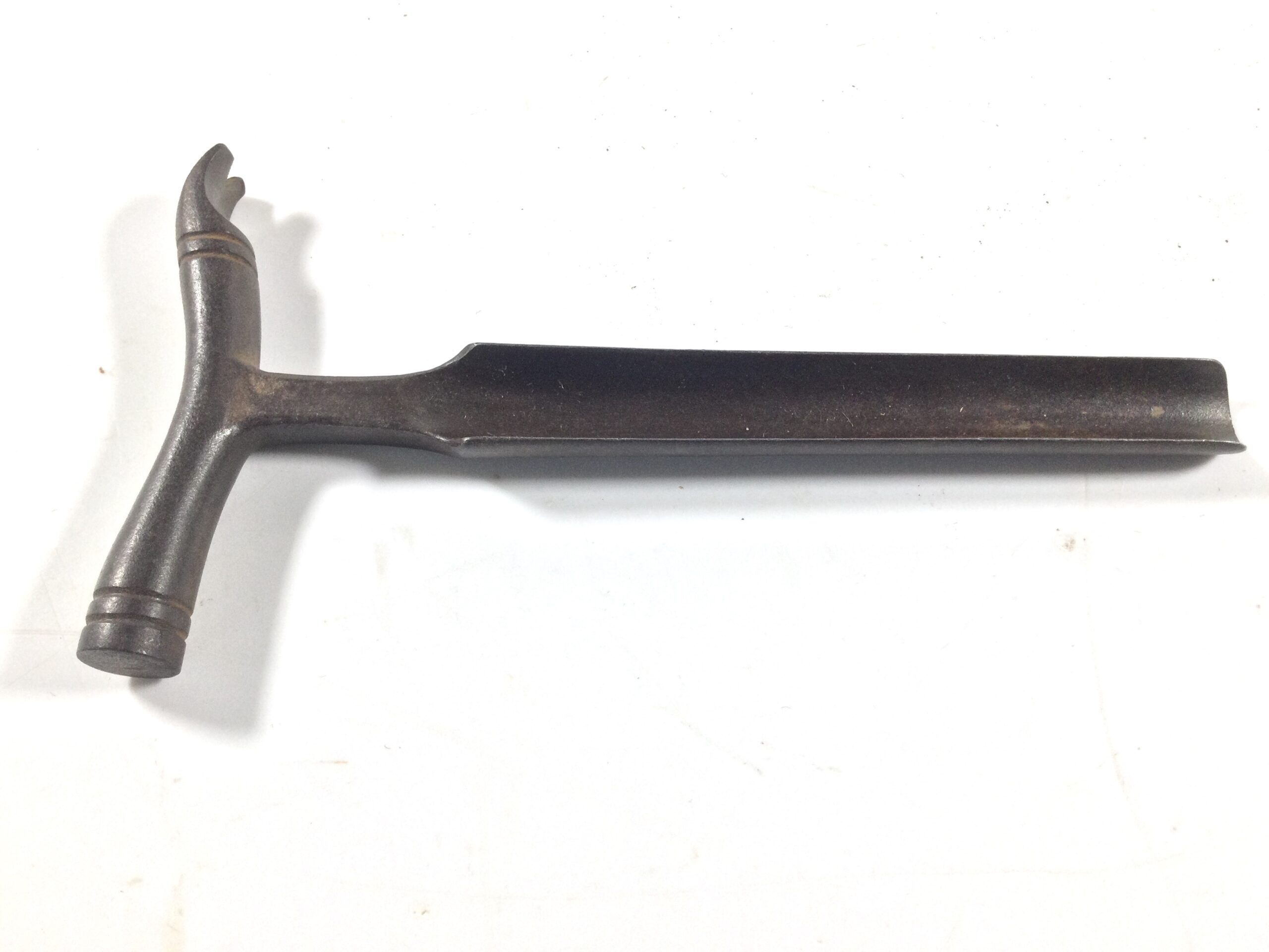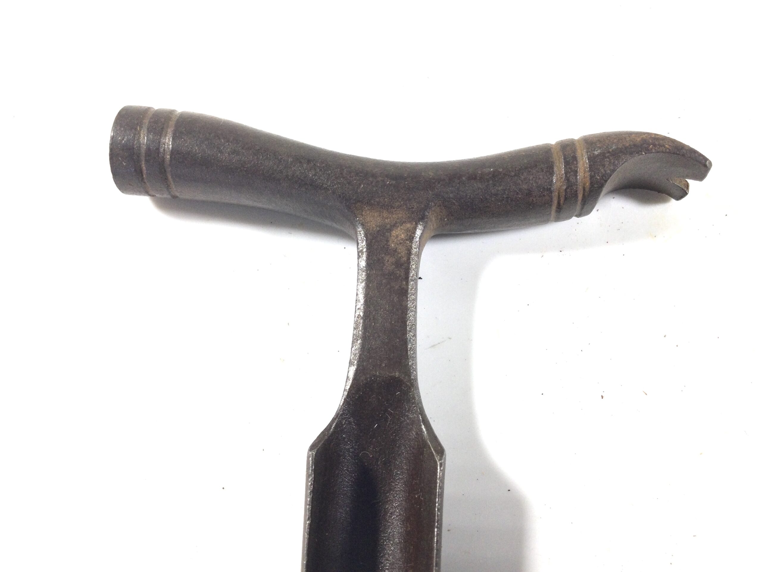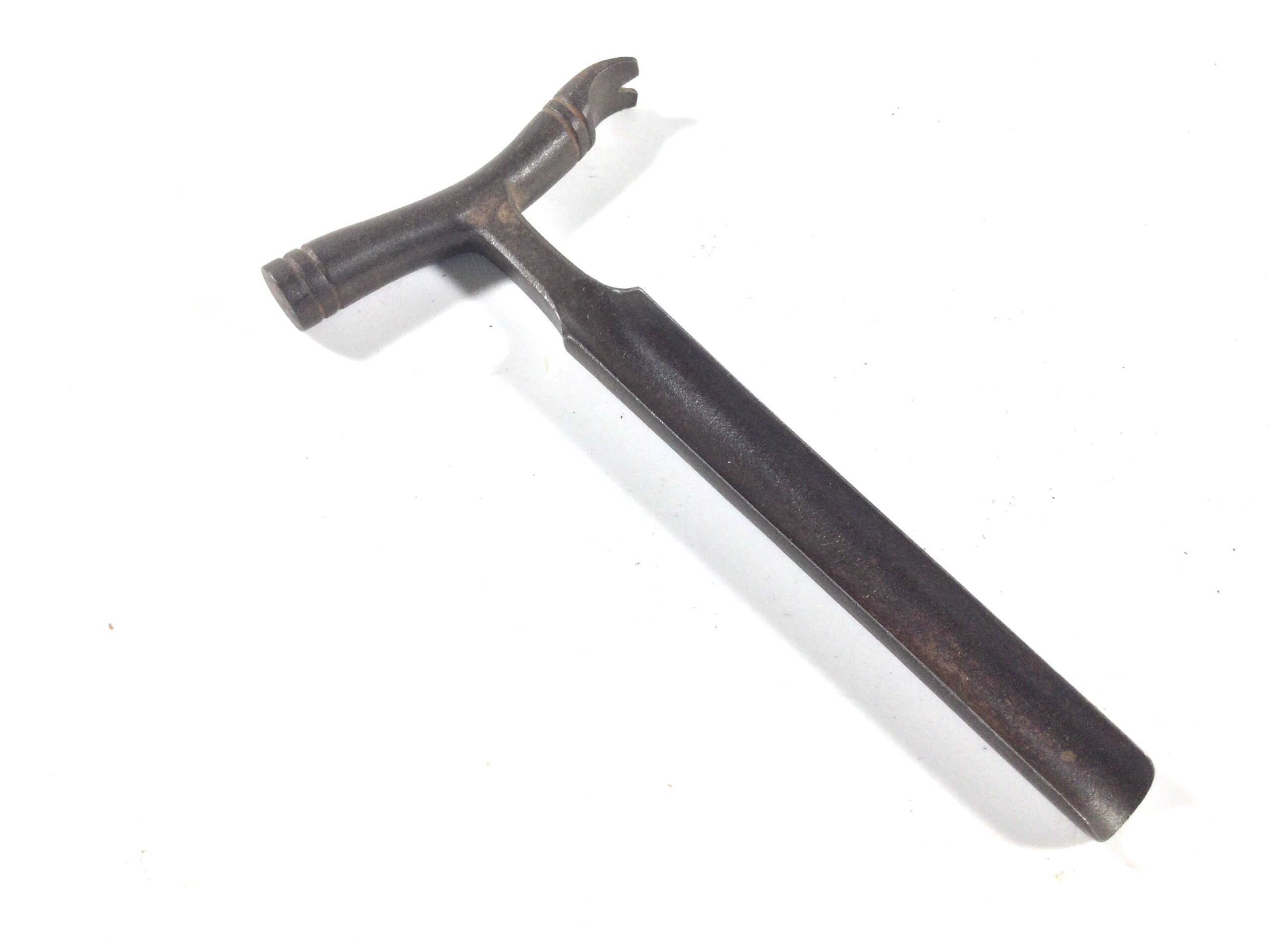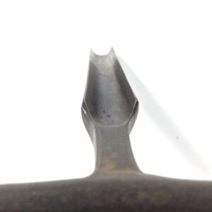 A stunning looking all steel vintage cheese taster, the hammer head has lovely curved features and detail on it with a curved claw to other end, the neck has chamfered detail before what looks as though it’s a sort of gouge, the full length of the tool measures 6” with a hammer head measuring 3.3/8” across the round hammer end is 1/2” diameter, and the gouge width measures 5/8” width, a super elegant looking vintage tool.