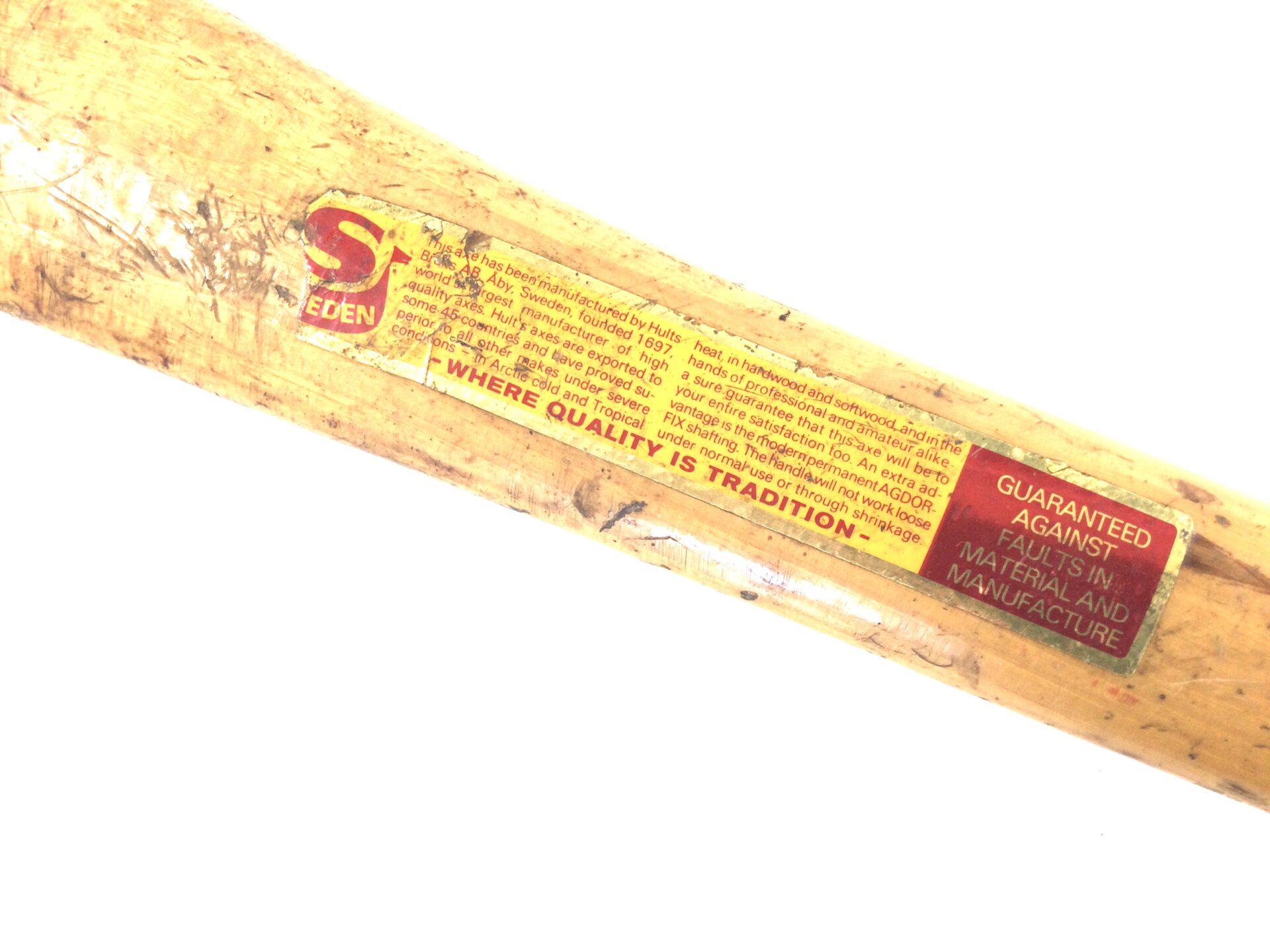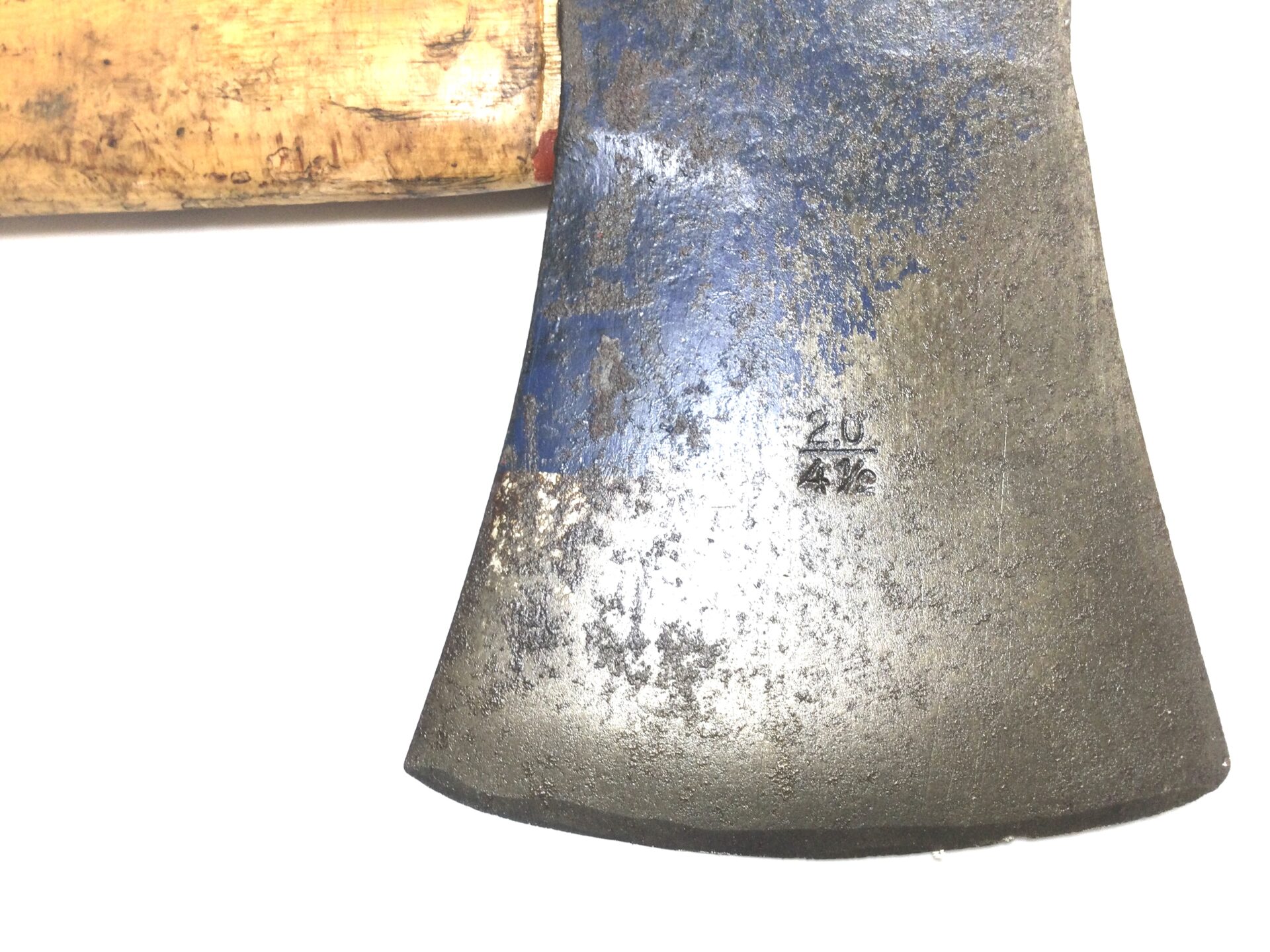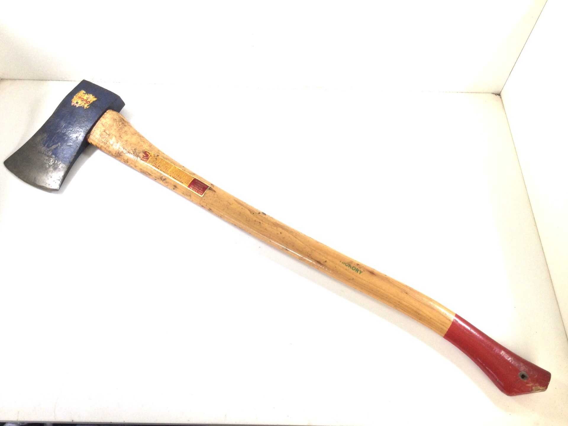 A great axe with a 35” Hickory shaft. The head has a double bevel edge that is good, head stamped 2.0Kg and 4.1/2 Lb. The edge measuring 4.3/4” wide and a height of 8.1/4” made in Sweden.