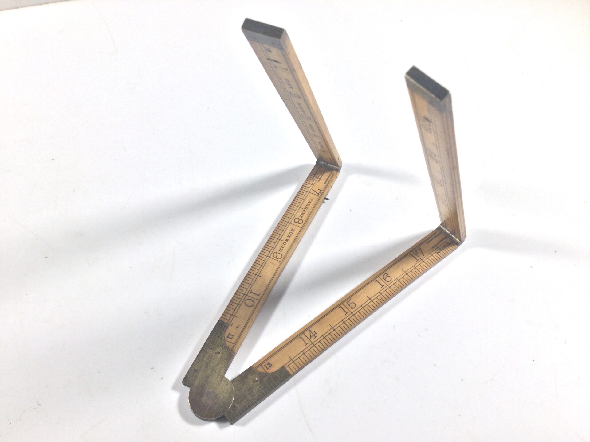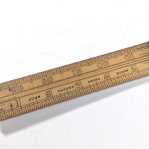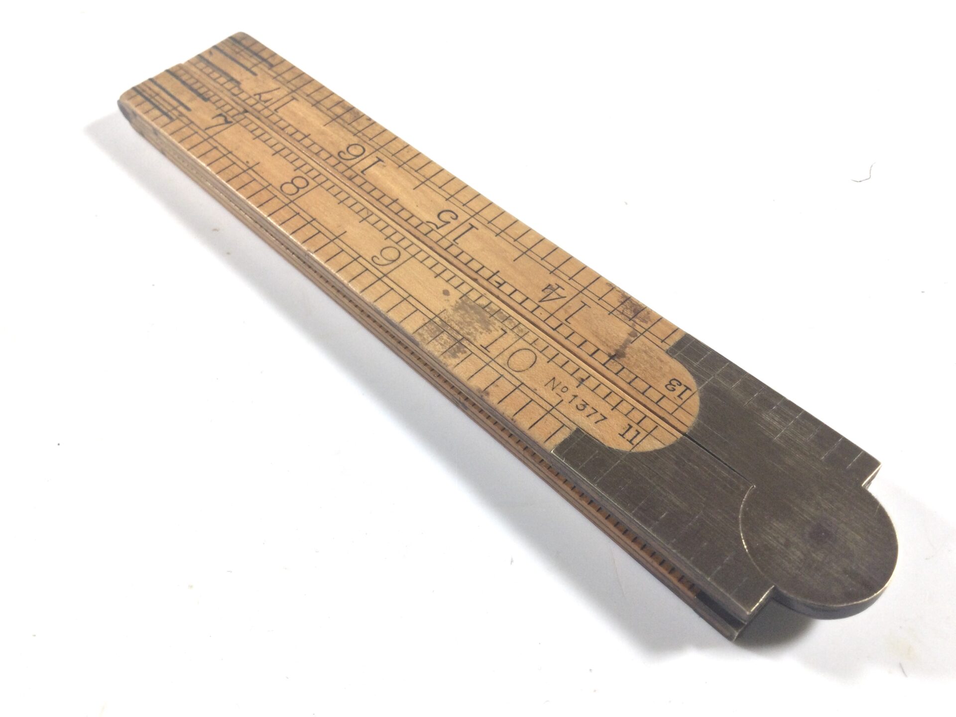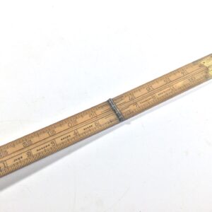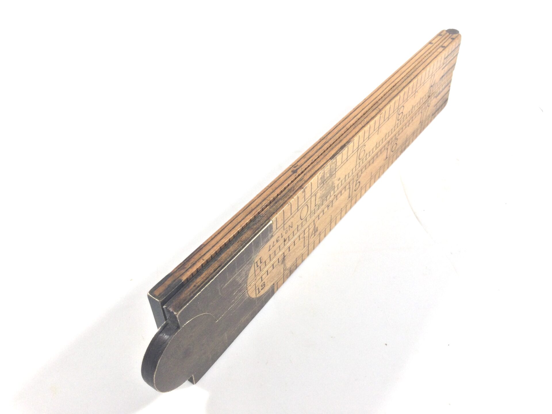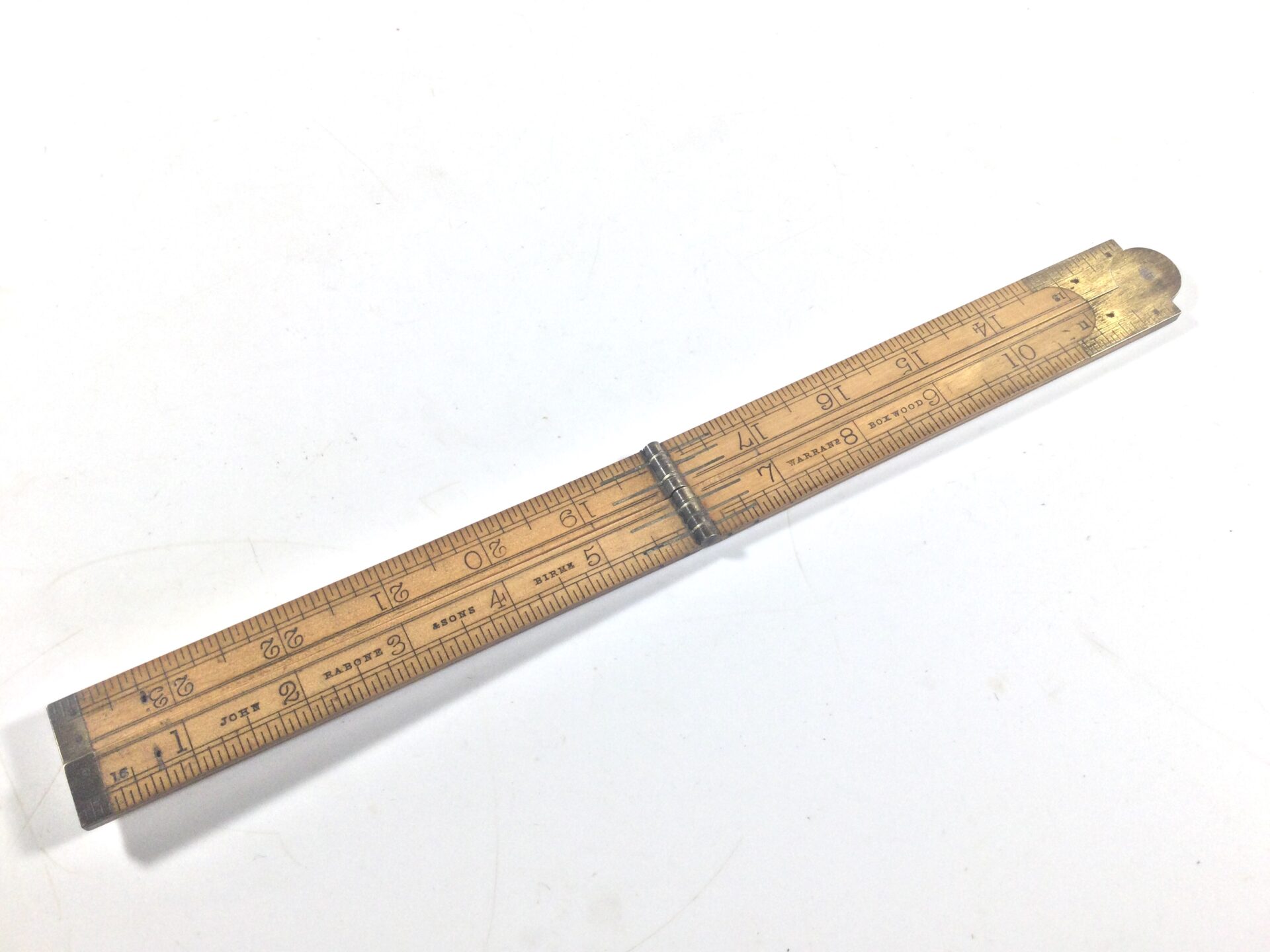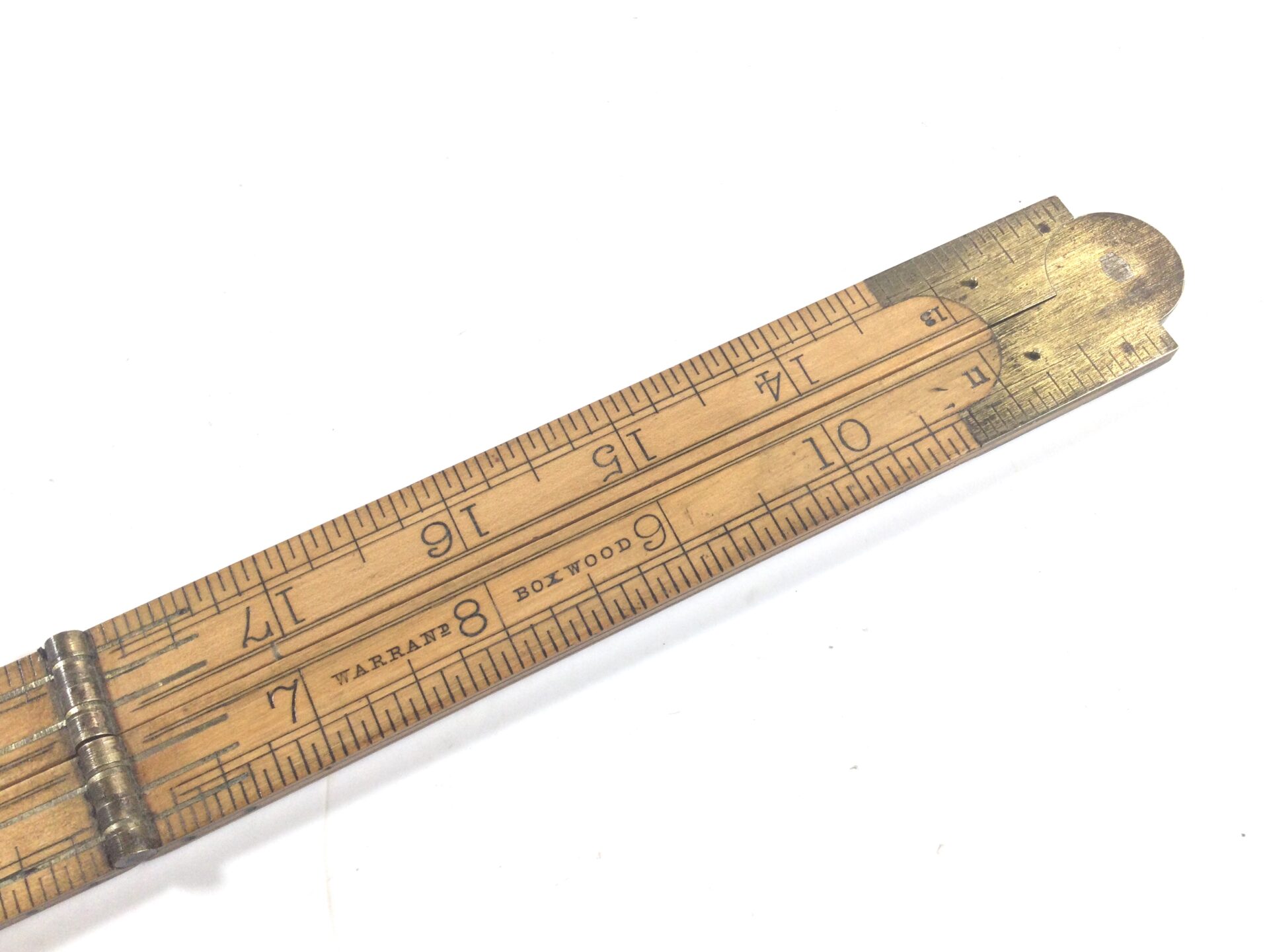 A very nice clean boxwood rule, marked in inches up to 24” with increments of 1/8” and 1/16” , nice brass fittings with locating pin present.