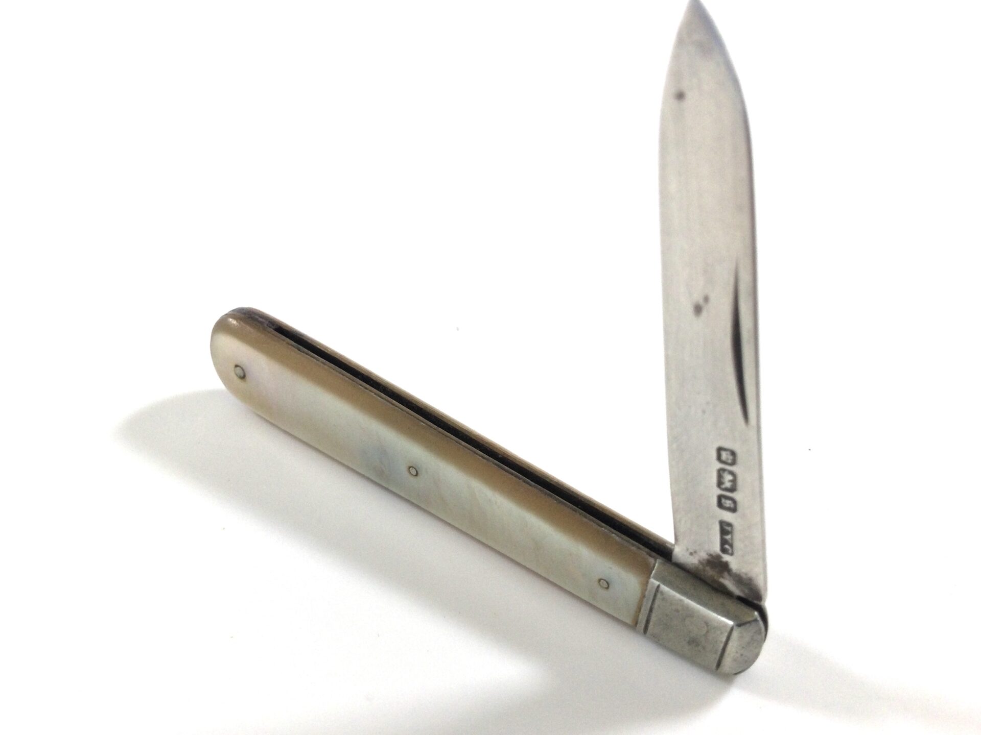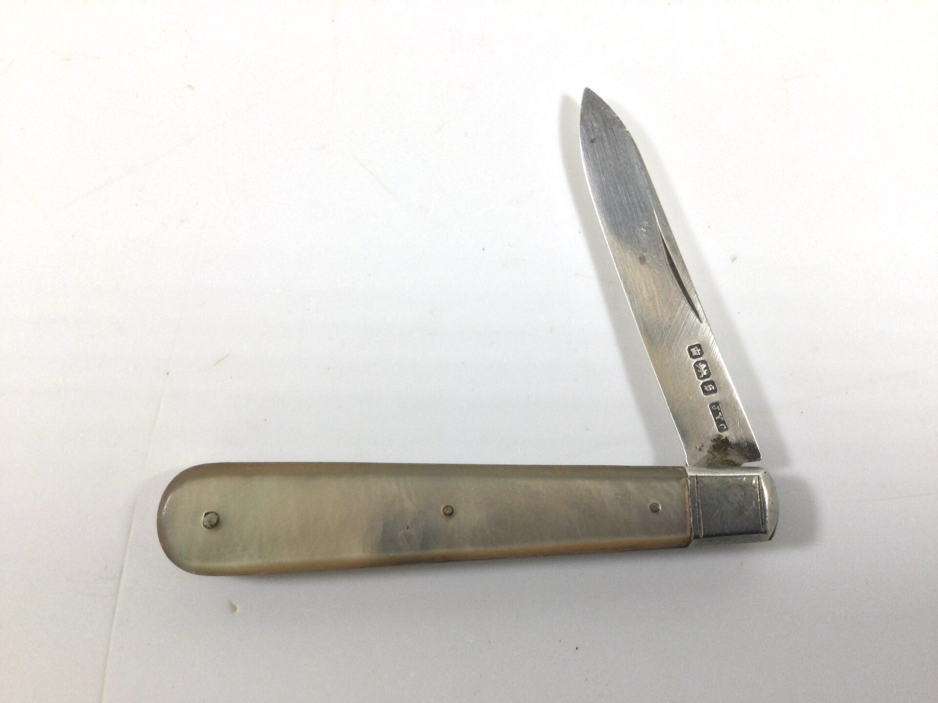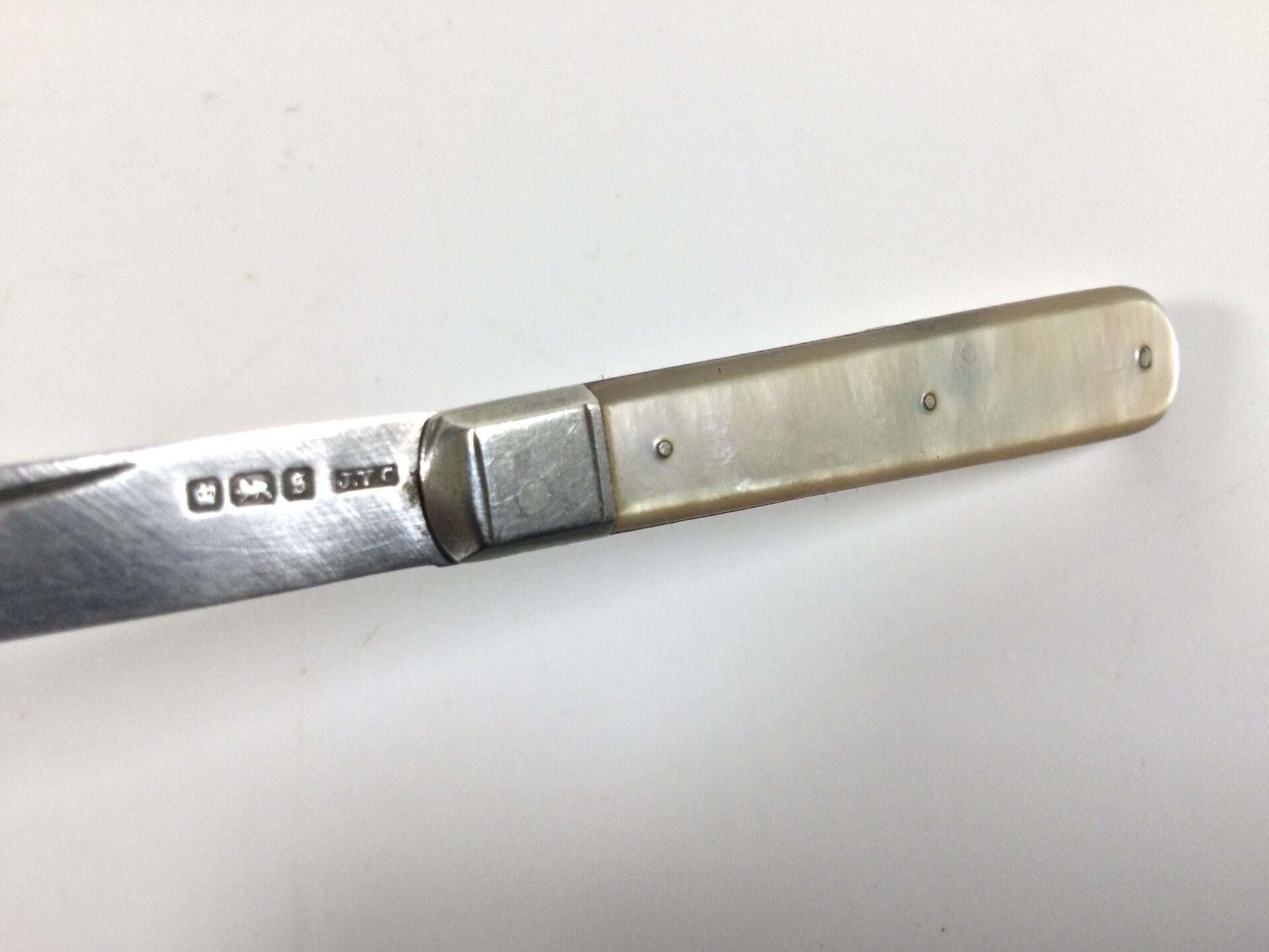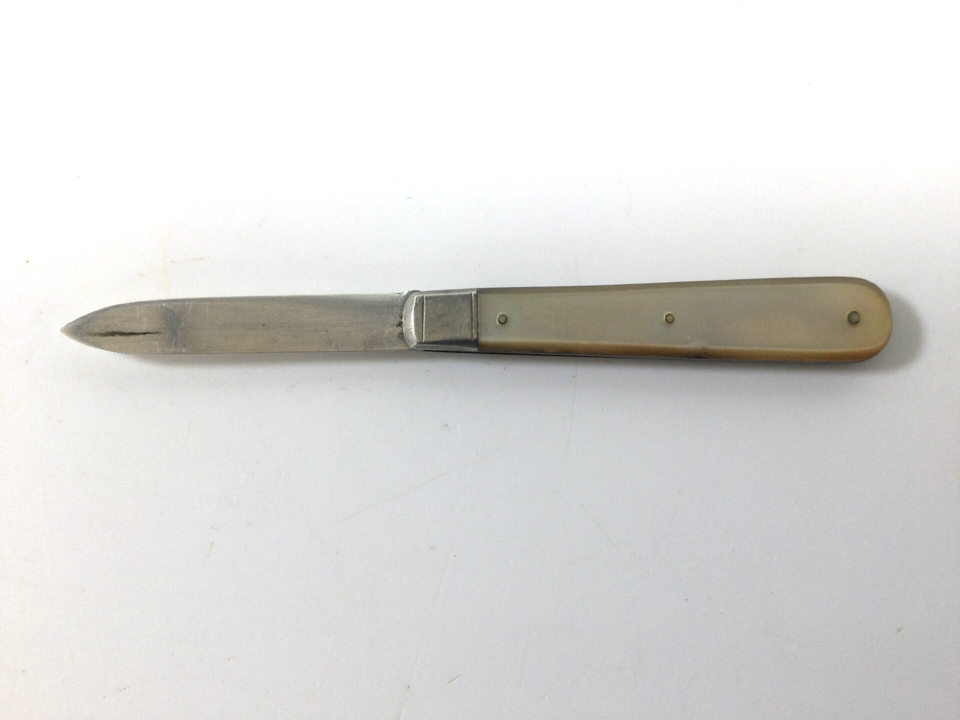 A very nice ladies fruit knife with hallmark JYC. The blade measures 1.3/4” the handles are scaled with mother of pearl and nice, fully closed knife measures 2.1/2” long.