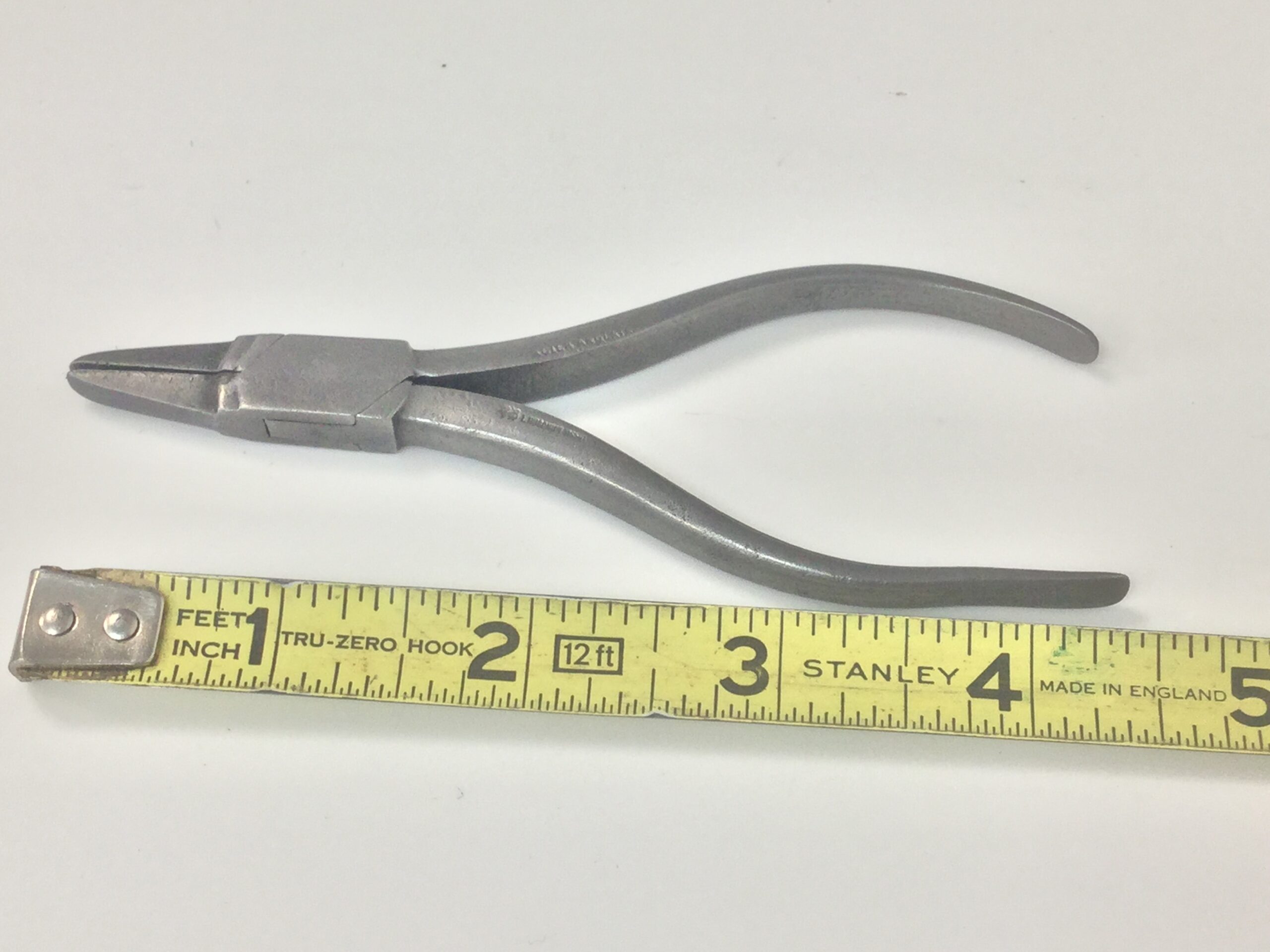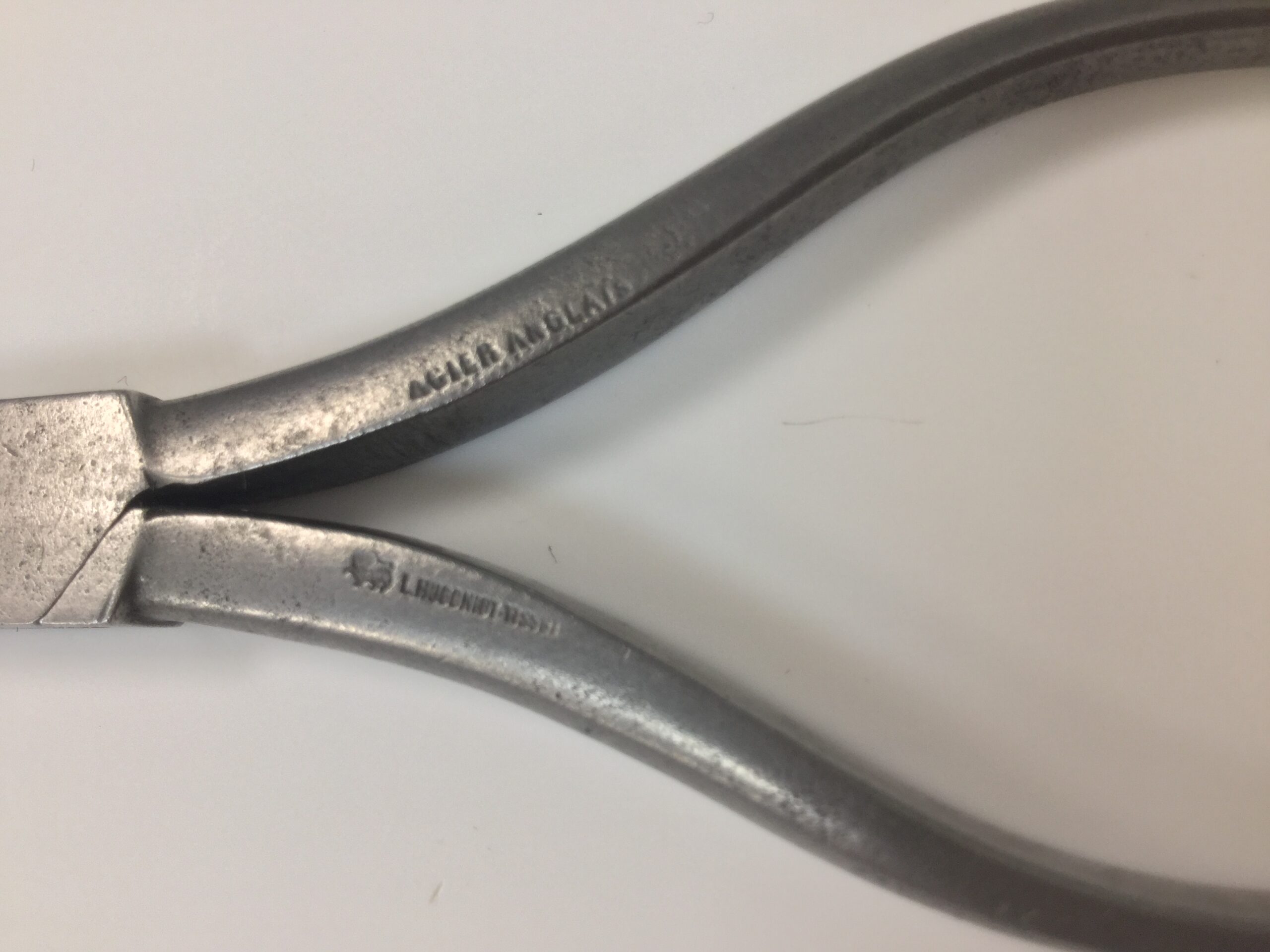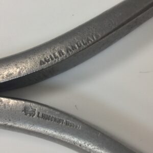 An early pair of 4 1/2” pliers, clean steel with makers stamp and lion and crown logo.