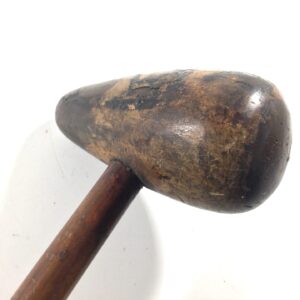 A super 12 3/4” long beechwood lead bossing tool, made by “MONUMENT” and bears their logo stamped on one side, the bottom edge is rounded as is the tip at end for rounded beating work, nice clean condition.