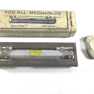 A vintage patented line level that was made by FRANK B. HALL of Geneva, Ohio, U.S.A. Still with its original tin box container, very clean with clear script.
