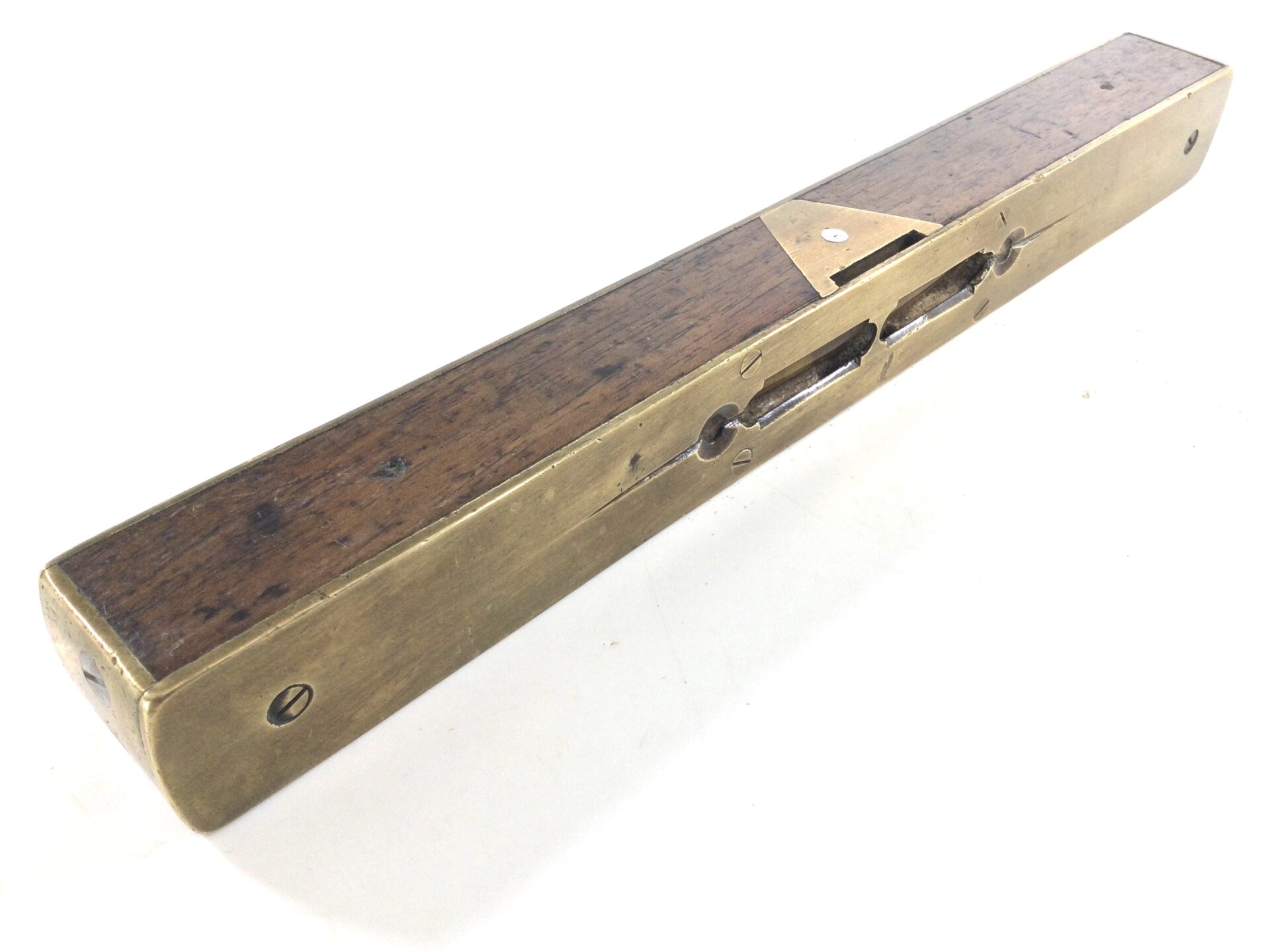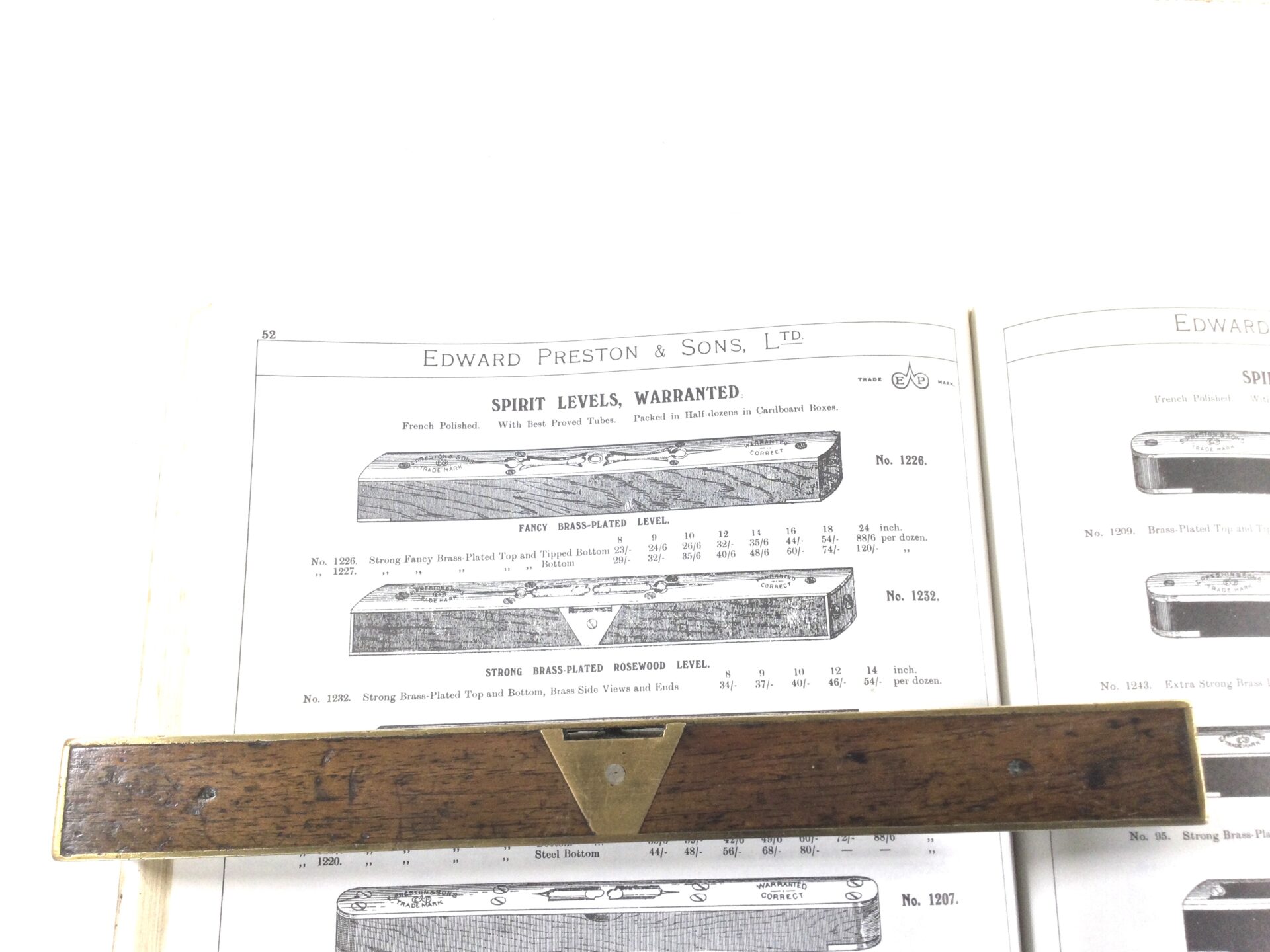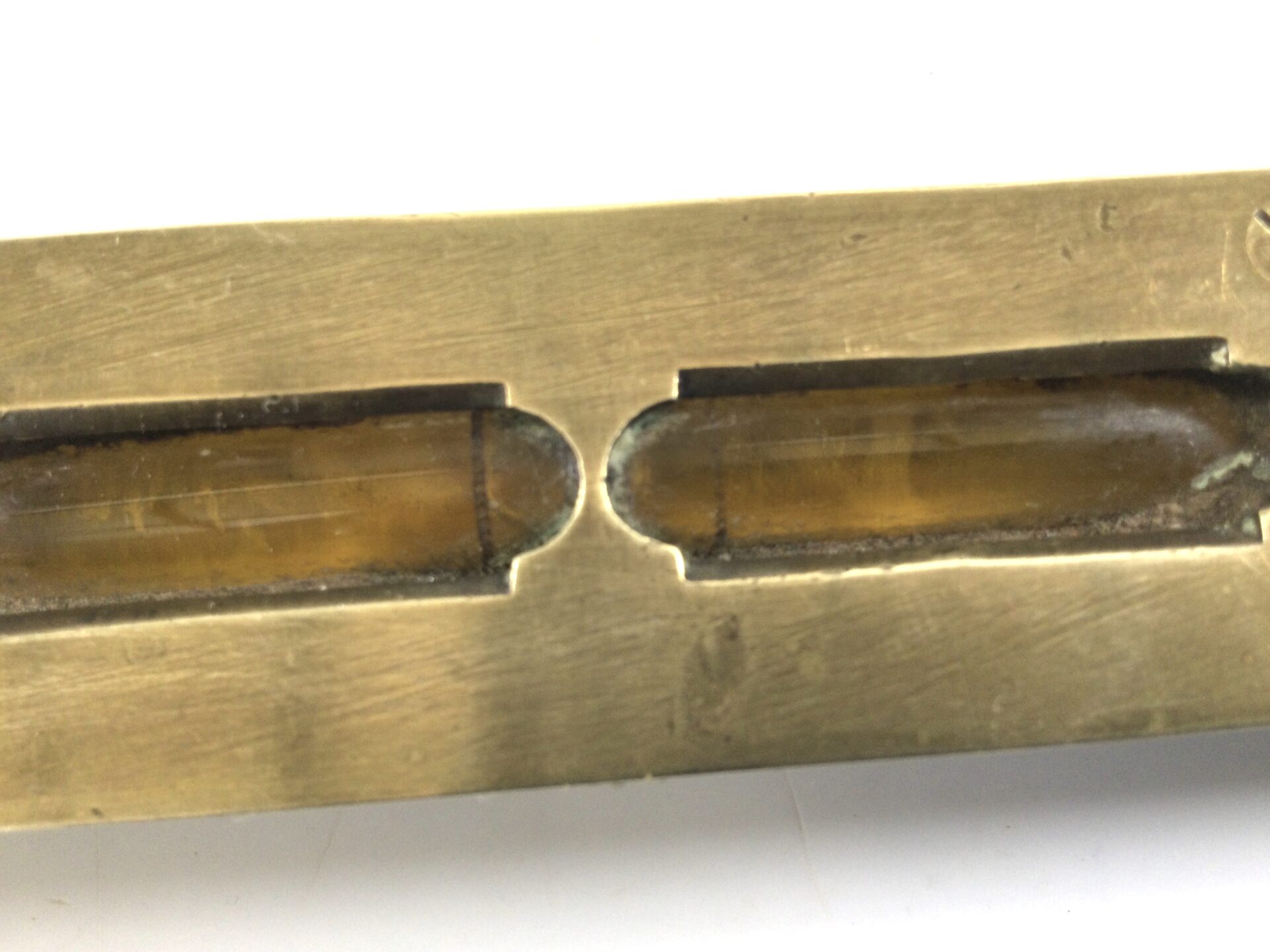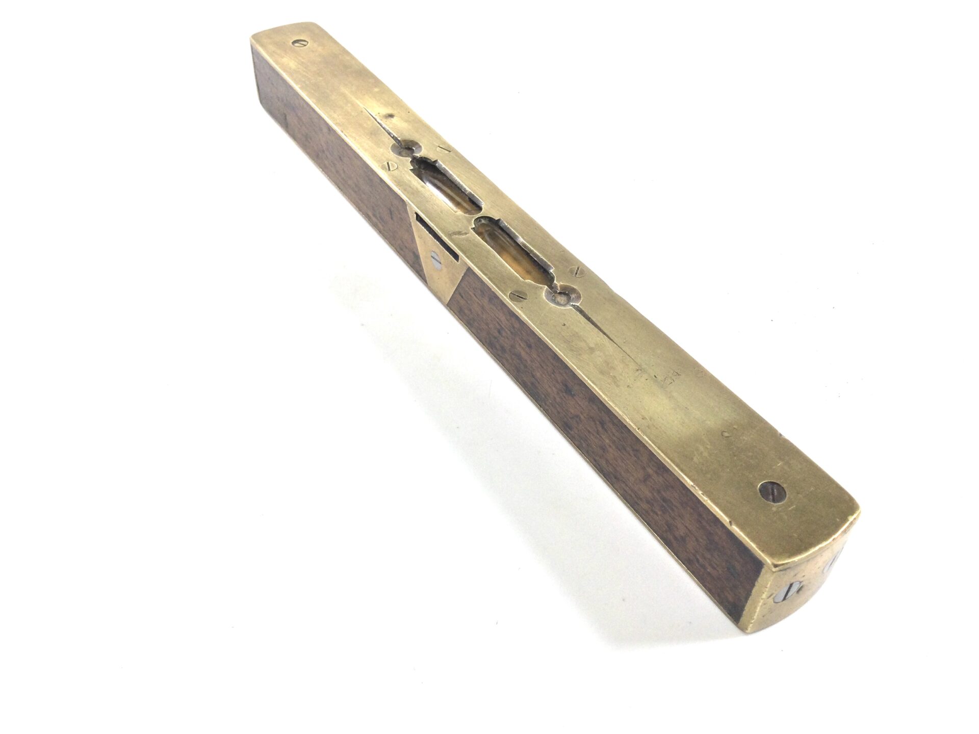 Undoubtably made by PRESTON, this model is shown in their 1909 catalogue as number 1232. Strong brass plated top and bottom, brass side views and ends. 10” length model. With rosewood insert. A very nice scarce model.