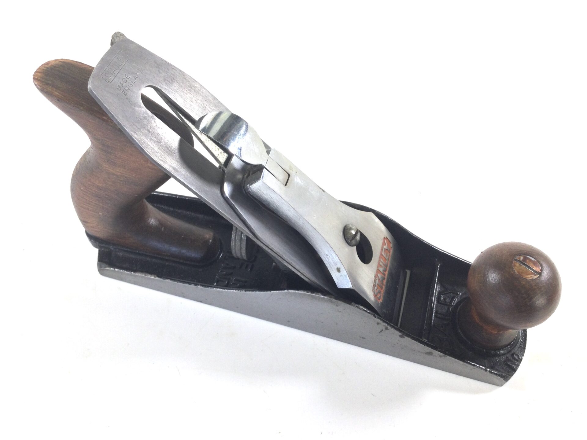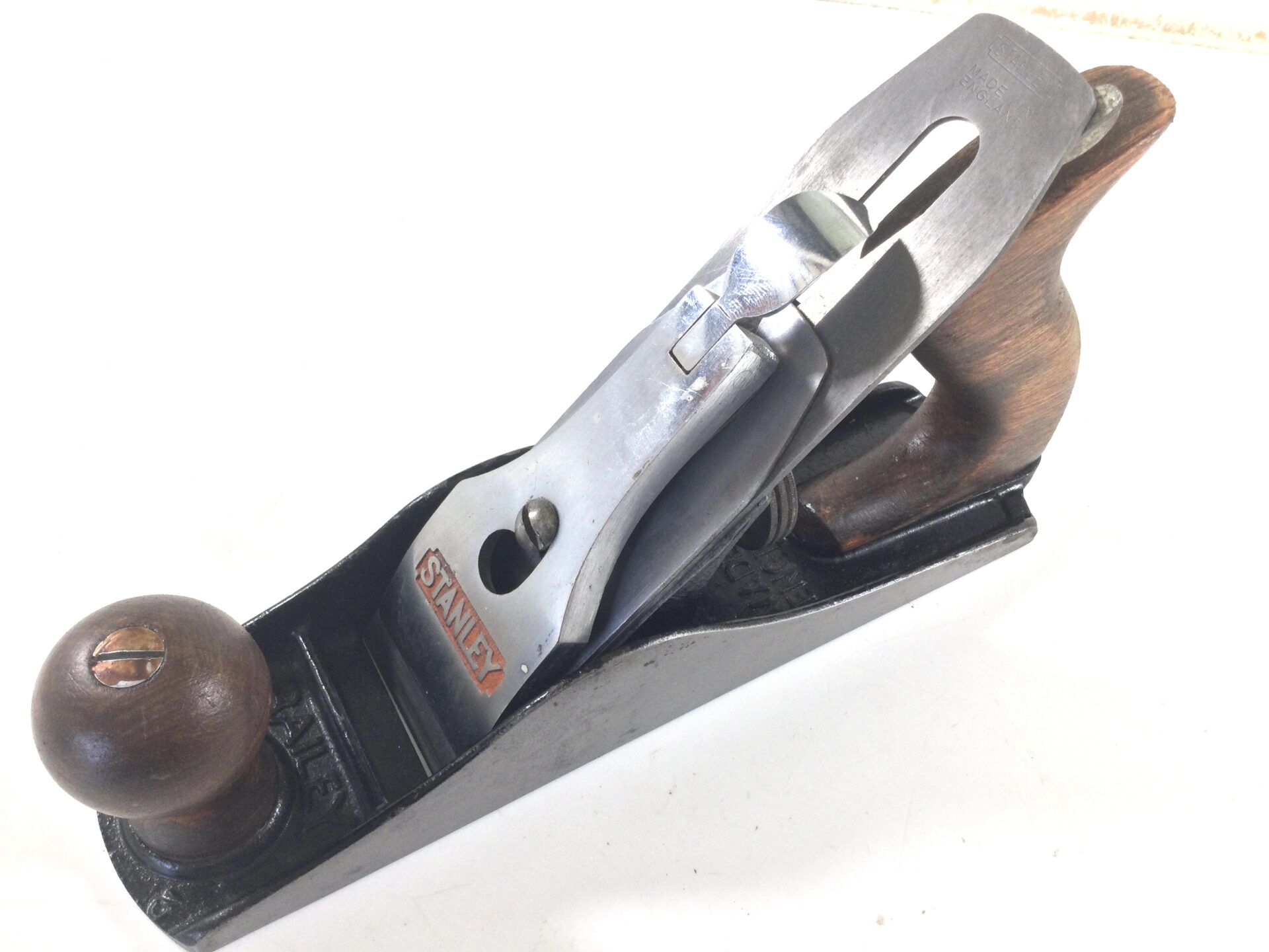 A good clean plane with just a couple of rust spots, the woodwork is good condition being refreshed by an ex owner, full length and sharp STANLEY iron.