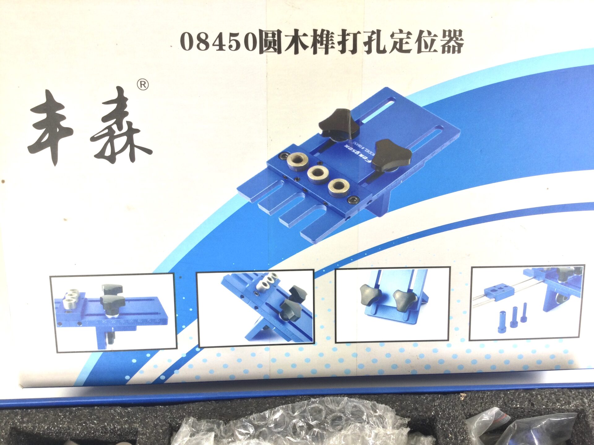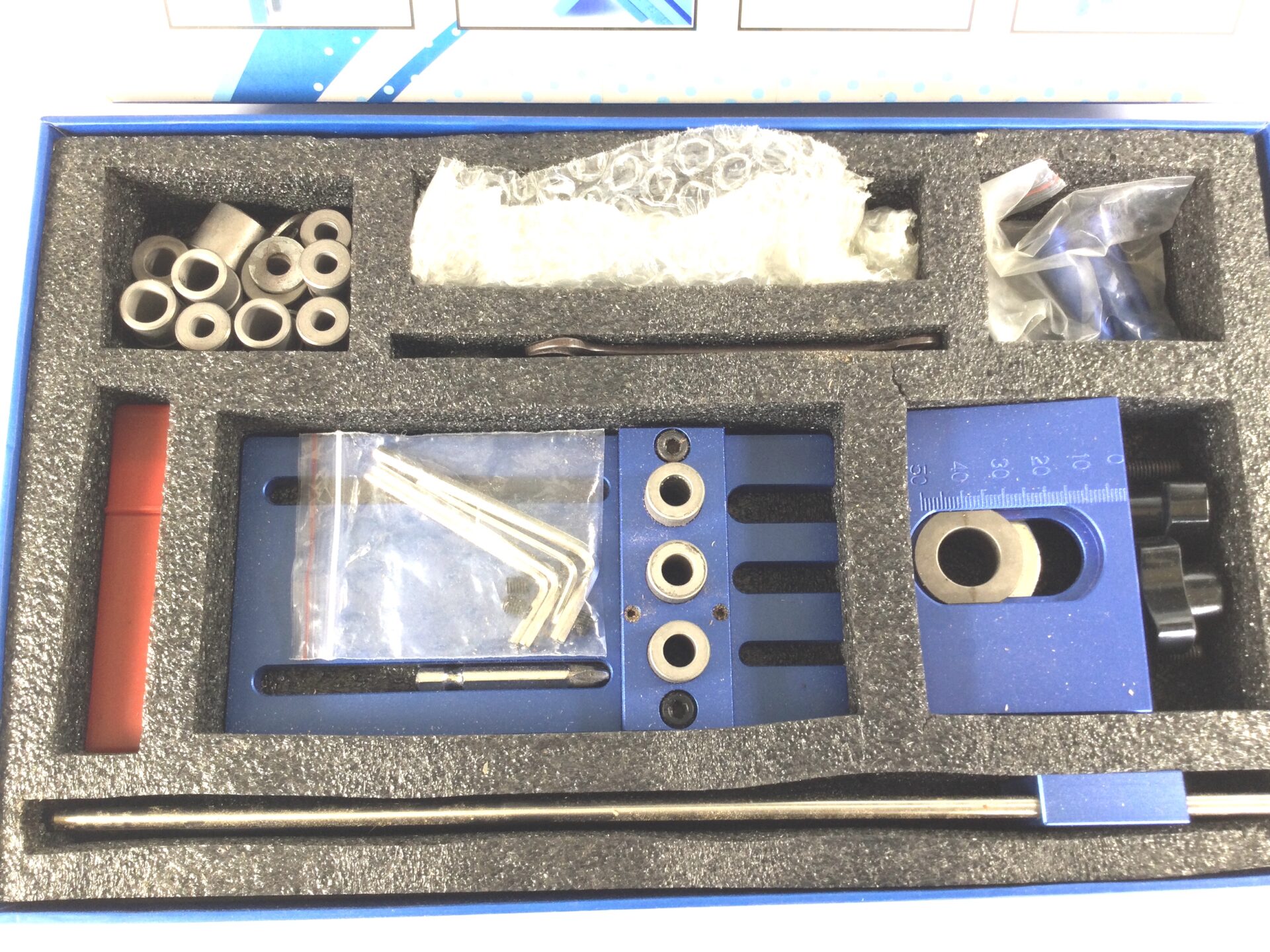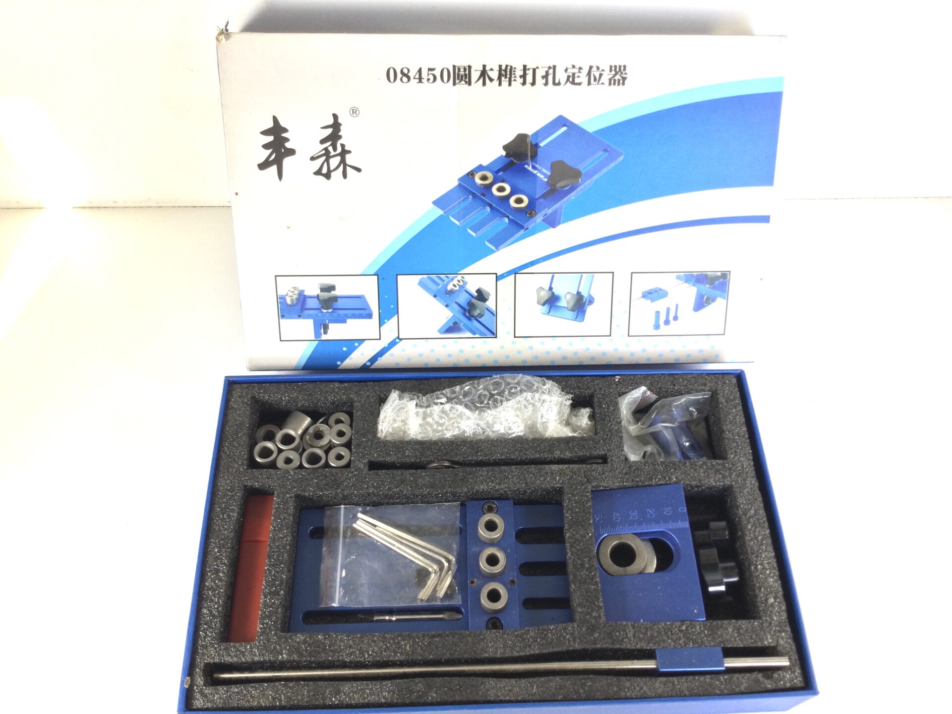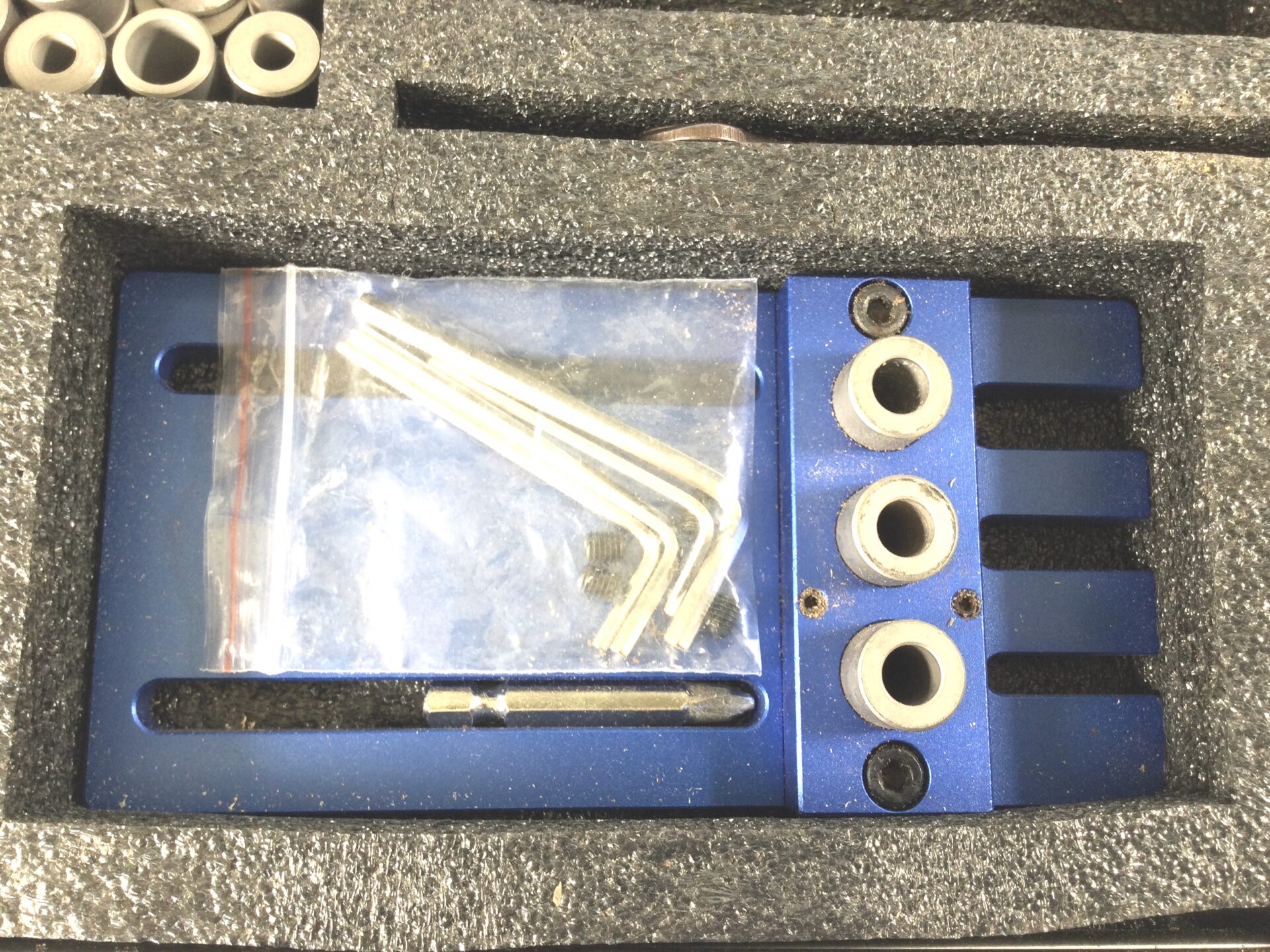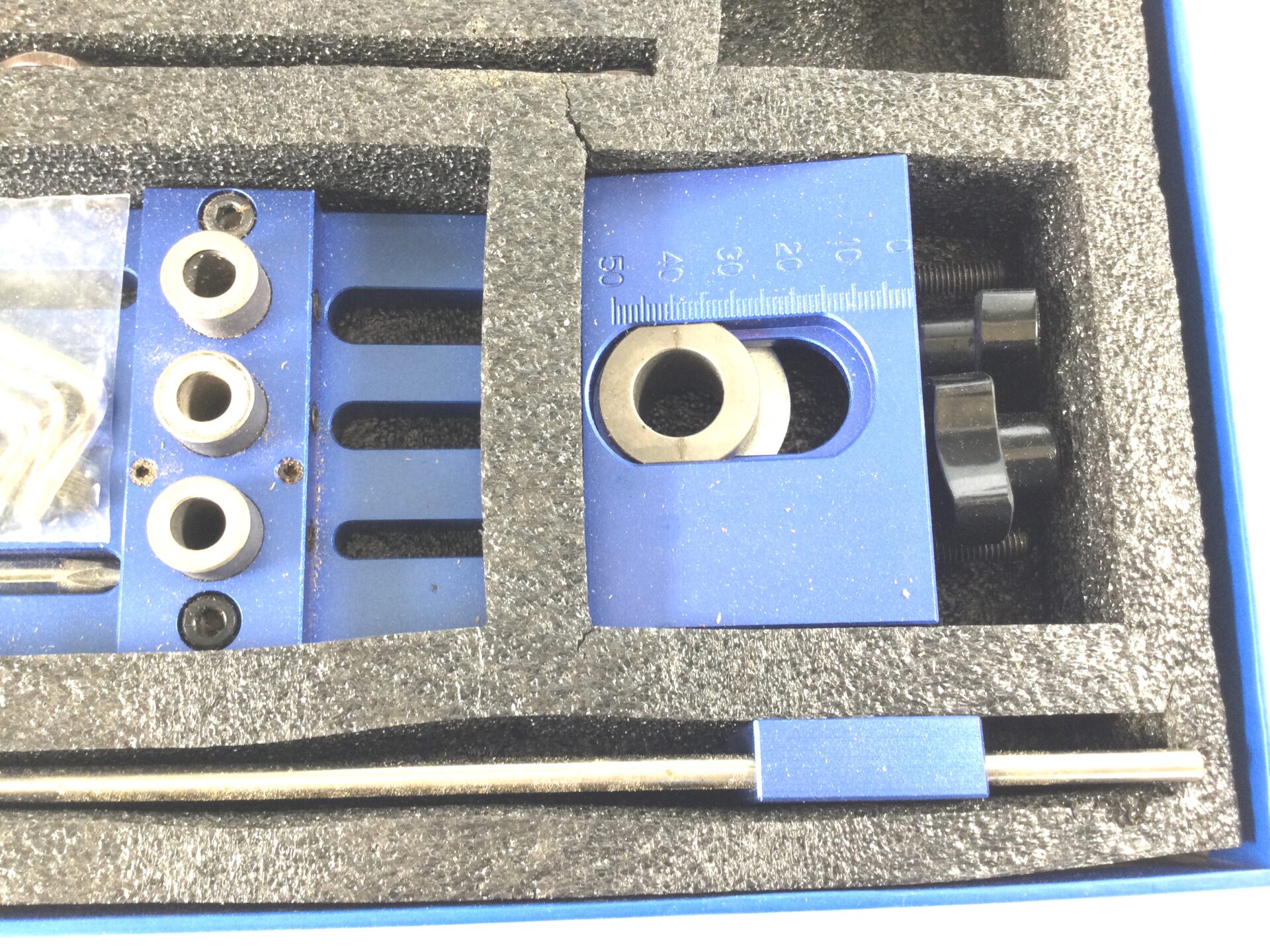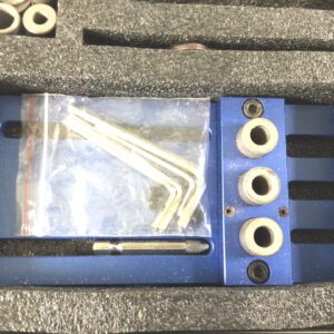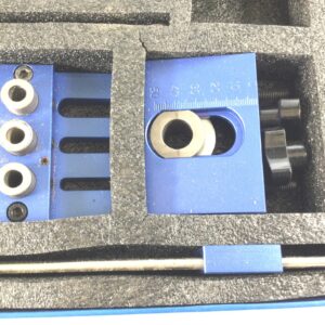 A Chinese made aluminium dowelling jig, model number 05450. Looks to be little used and complete, in its box. Can’t find much information on this jig, but you can see the Amazon price if you look.